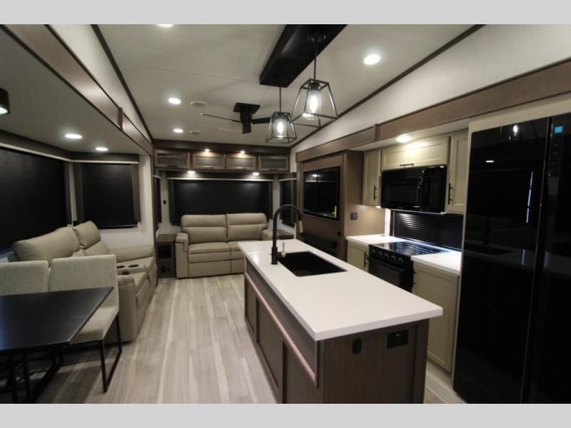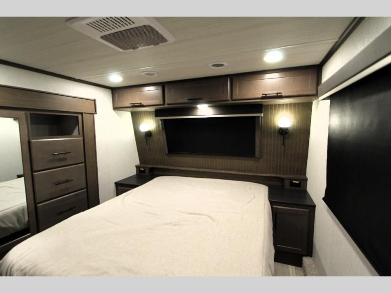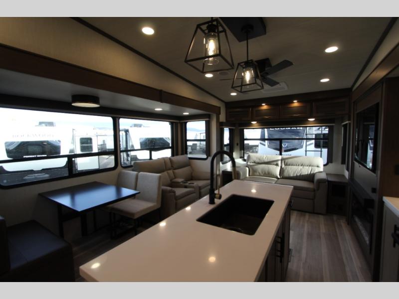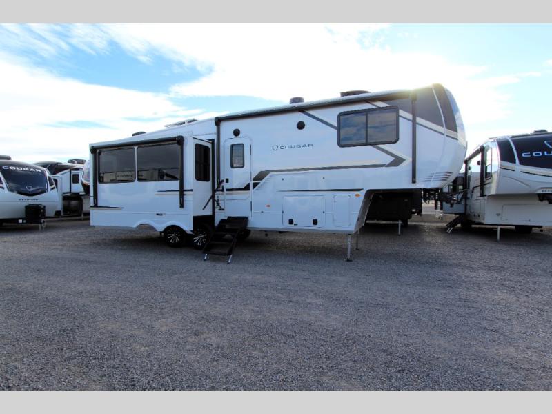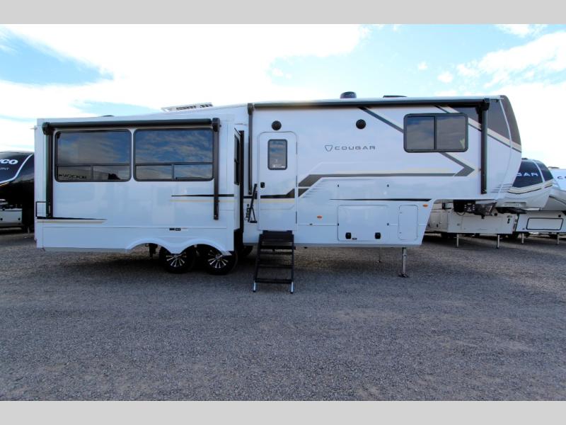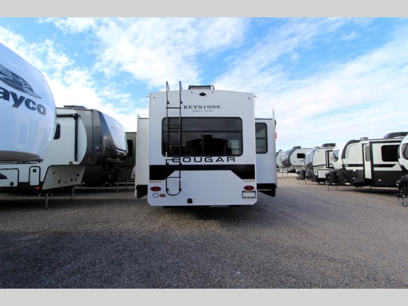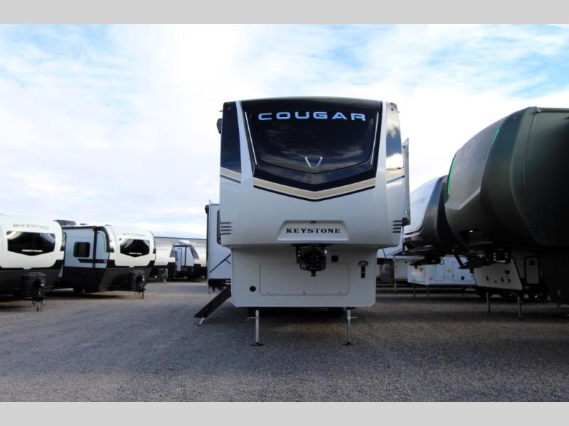 Spend more time having fun and less time worrying about your RV with the Keystone Cougar fifth wheel! These units have all that you will need for excellent vacations. The interior comes hardwood cabinet doors, solid surface kitchen countertops, an Oxygenics shower head and hose, plus a Vent-All window system. You will also appreciate the 12V charging stations throughout, the dual zone Bluetooth audio system, and the on-demand water heater for added comfort. The exterior is also fully outfitted with a convenience center, MaxTurn technology, Lippert axles with anti-lock braking system, and a Curt Road Armor shock absorbing equalizer for smooth towing. Each model is available with the optional Hero Edition. By choosing this edition, you can help support our nation's heros and their families by contributing to the Wounded Warrior Project. This optional package features an industry exclusive full-body paint matte finish, frameless windows, a glass entry door, blackout rims, and green LED exterior accent lighting; see dealer for more details!