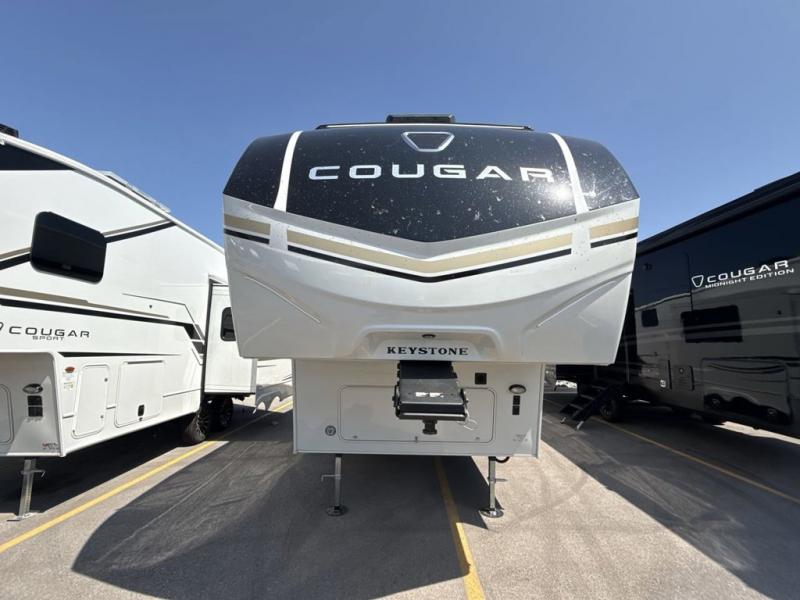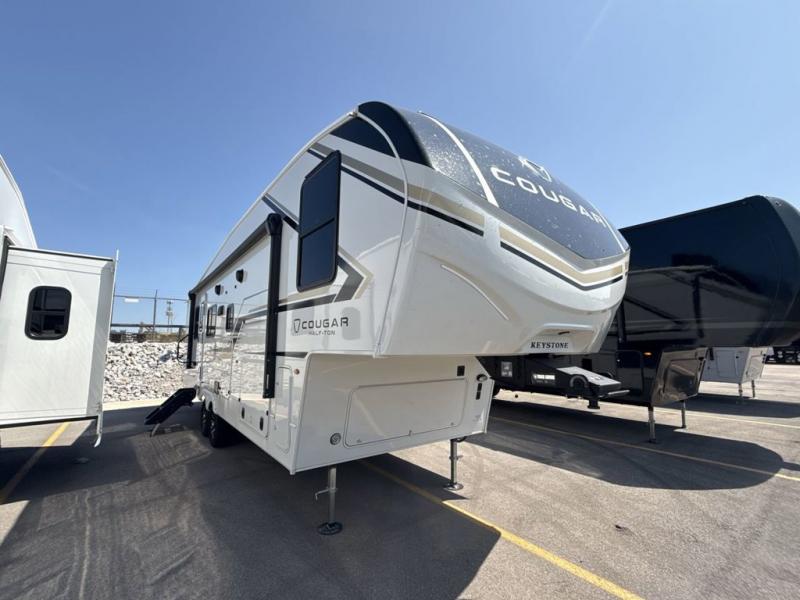 The Keystone Cougar Half-Ton fifth wheel and travel trailers are known as one of America's favorites for a reason! Some of those reasons are the exclusive features that come from Keystone, like the Winegard Air 360+ omni-directional rooftop antenna, the in-floor heating ducts, and the HyperCore composite wall construction with Vixen Fibrogloss high-gloss finish. The Cougar Half-Ton has a Climate Guard protection package with heat-deflecting white sidewalls, two roof attic vents, PEX plumbing and more to enjoy four season camping. Inside, you'll love the dimmable lighting, night roller shades throughout, shower skylight, and bedside USB outlets to keep your electronics charged.