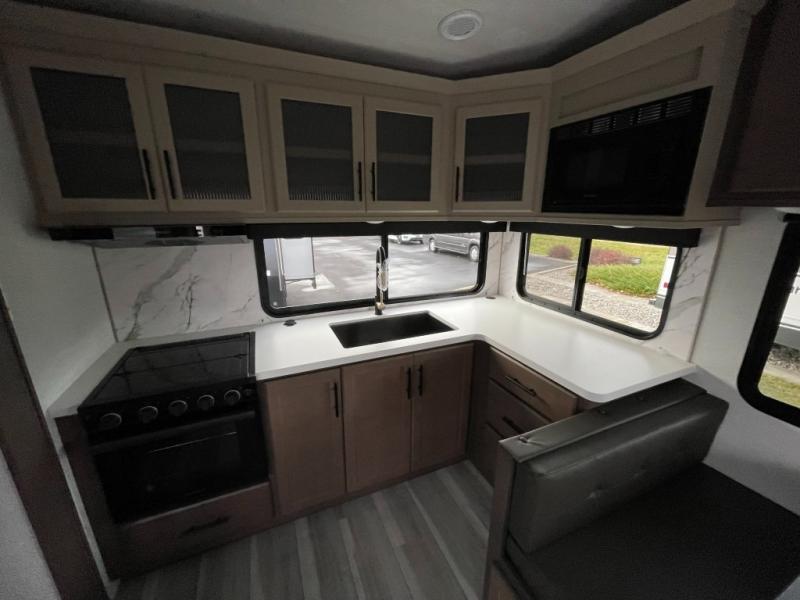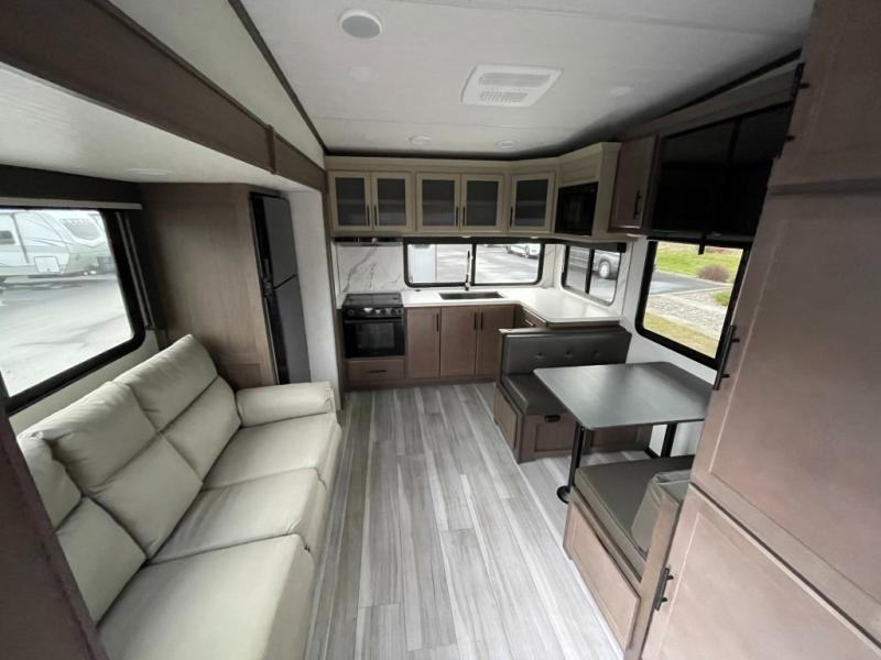 The Keystone Cougar Half-Ton fifth wheel and travel trailers are known as one of America's favorites for a reason! Some of those reasons are the exclusive features that come from Keystone, like the Winegard Air 360+ omni-directional rooftop antenna, the in-floor heating ducts, and the HyperCore composite wall construction with Vixen Fibrogloss high-gloss finish. The Cougar Half-Ton has a Climate Guard protection package with heat-deflecting white sidewalls, two roof attic vents, PEX plumbing and more to enjoy four season camping. Inside, you'll love the dimmable lighting, night roller shades throughout, shower skylight, and bedside USB outlets to keep your electronics charged.