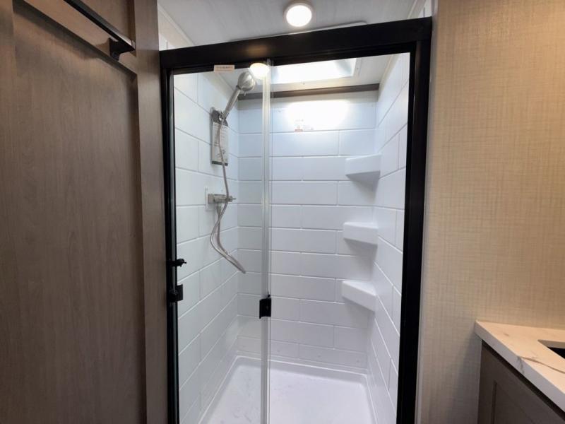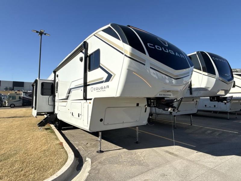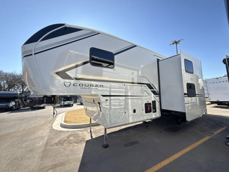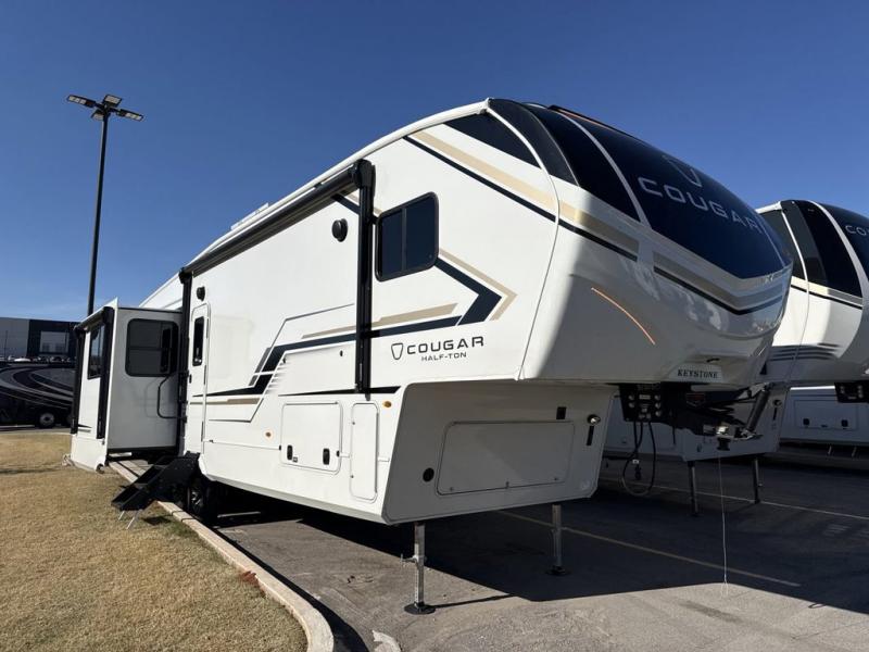The Keystone Cougar Half-Ton fifth wheel and travel trailers are known as one of America's favorites for a reason! Some of those reasons are the exclusive features that come from Keystone, like the Winegard Air 360+ omni-directional rooftop antenna, the in-floor heating ducts, and the HyperCore composite wall construction with Vixen Fibrogloss high-gloss finish. The Cougar Half-Ton has a Climate Guard protection package with heat-deflecting white sidewalls, two roof attic vents, PEX plumbing and more to enjoy four season camping. Inside, you'll love the dimmable lighting, night roller shades throughout, shower skylight, and bedside USB outlets to keep your electronics charged.