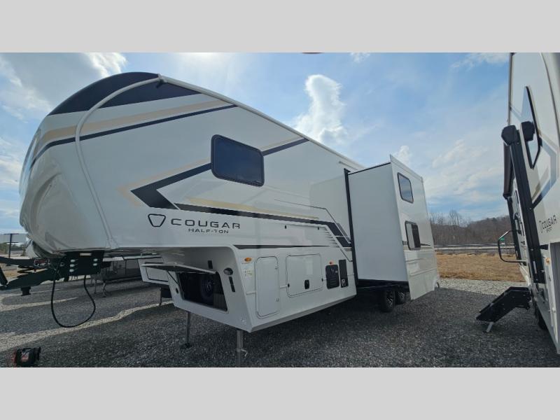The Keystone Cougar Half-Ton fifth wheel and travel trailers are known as one of America's favorites for a reason! Some of those reasons are the exclusive features that come from Keystone, like the Winegard Air 360+ omni-directional rooftop antenna, the in-floor heating ducts, and the HyperCore composite wall construction with Vixen Fibrogloss high-gloss finish. The Cougar Half-Ton has a Climate Guard protection package with heat-deflecting white sidewalls, two roof attic vents, PEX plumbing and more to enjoy four season camping. Inside, you'll love the dimmable lighting, night roller shades throughout, shower skylight, and bedside USB outlets to keep your electronics charged.