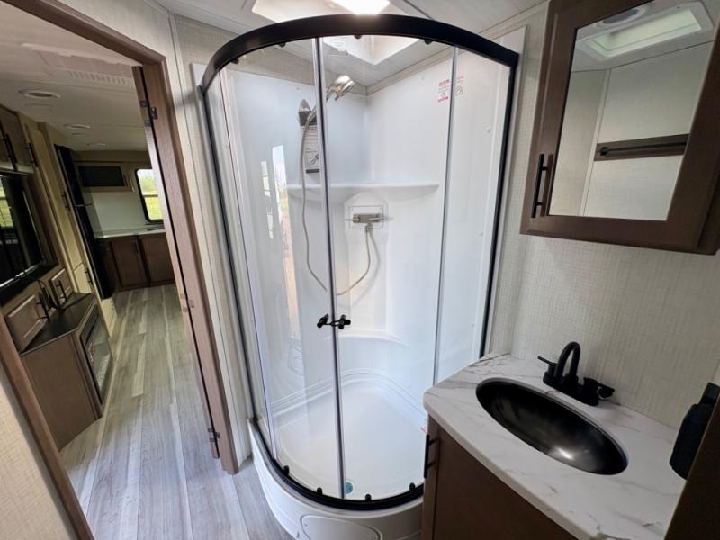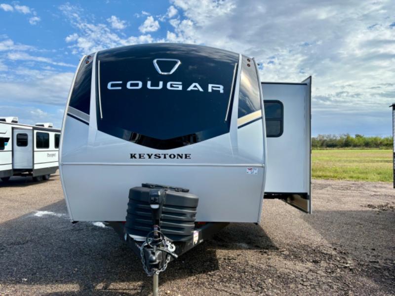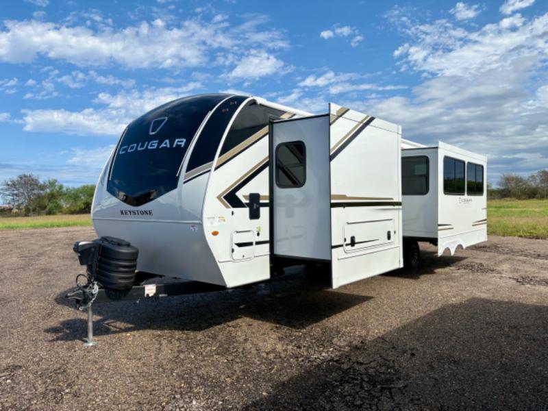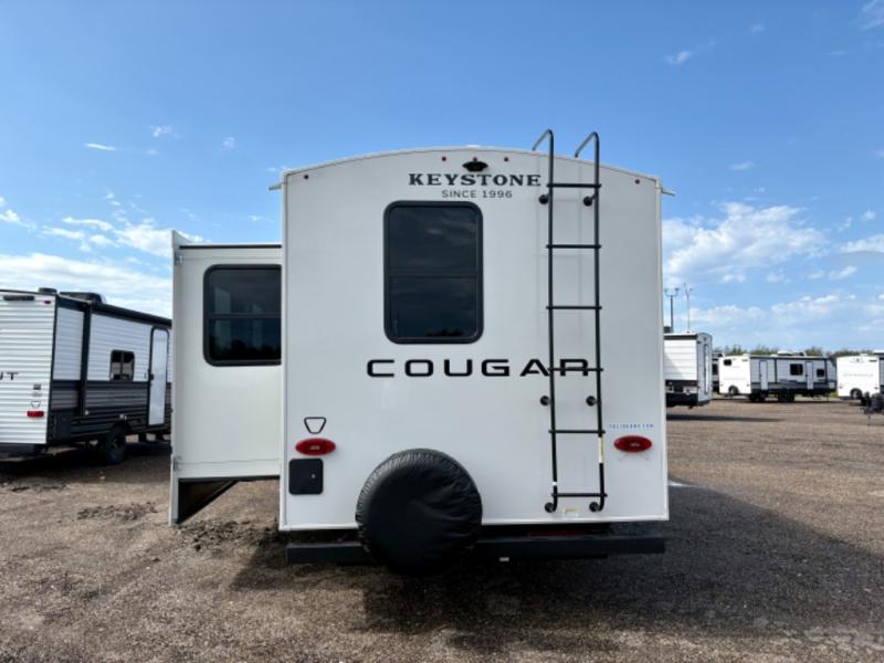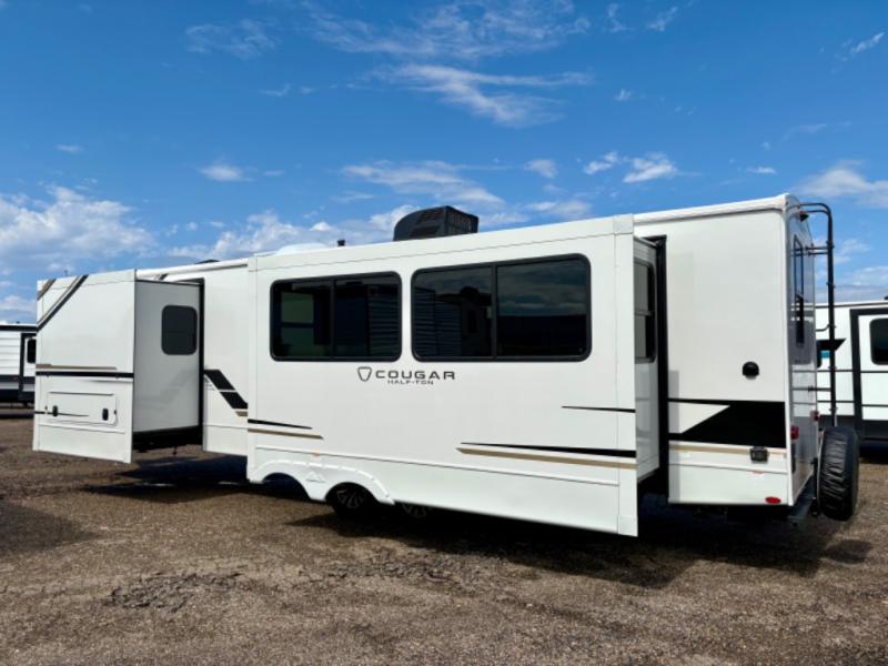 The Keystone Cougar Half-Ton fifth wheel and travel trailers are known as one of America's favorites for a reason! Some of those reasons are the exclusive features that come from Keystone, like the Winegard Air 360+ omni-directional rooftop antenna, the in-floor heating ducts, and the HyperCore composite wall construction with Vixen Fibrogloss high-gloss finish. The Cougar Half-Ton has a Climate Guard protection package with heat-deflecting white sidewalls, two roof attic vents, PEX plumbing and more to enjoy four season camping. Inside, you'll love the dimmable lighting, night roller shades throughout, shower skylight, and bedside USB outlets to keep your electronics charged.
