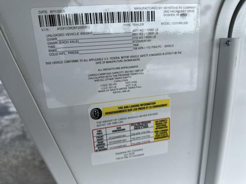 New 2026 Keystone RV COUGAR 316RLS Fifth Wheel