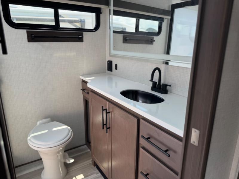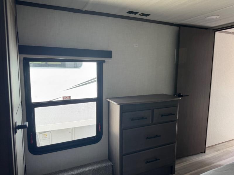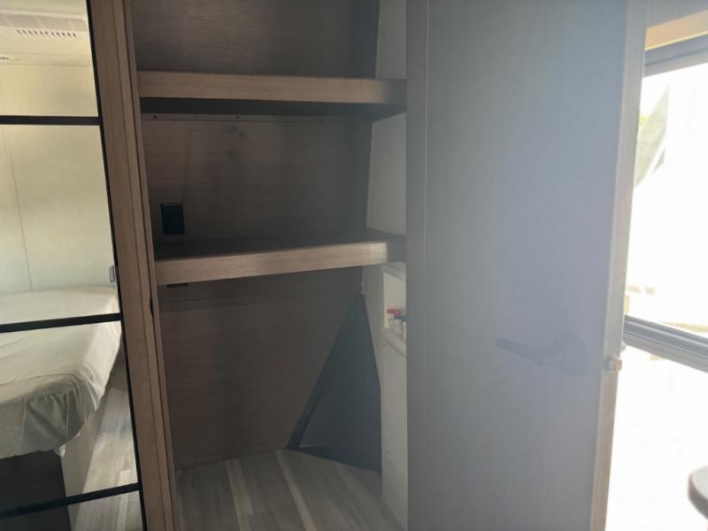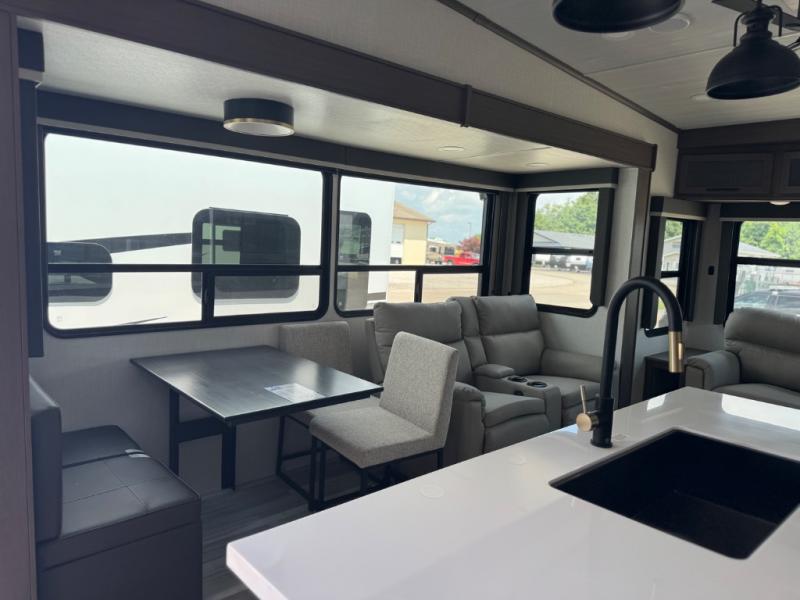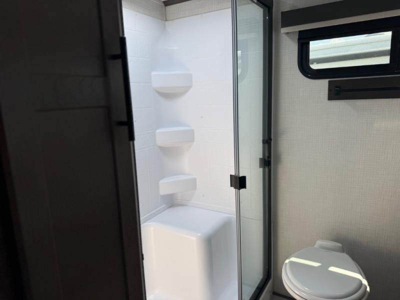 The dual opposing slides in the combined kitchen and living area will give you an open floorplan! You'll sleep on the queen-size bed in the front private bedroom, and there is under-bed storage, a full-height wardrobe, and a dresser with hidden storage for all of your personal belongings. As you spend time in the main living area, you'll appreciate having extra space thanks to the set of opposing slides, and the kitchen island will be easy to work around. You'll be able to relax on the tri-fold sleeper sofa and theater seating while you watch the LED HDTV with an pivoting entertainment door and hidden pantry. There is also a booth dinette with storage drawers, convenient shoe storage right as you enter the unit, and an exterior unobstructed pass-thru storage so nothing gets left behind.