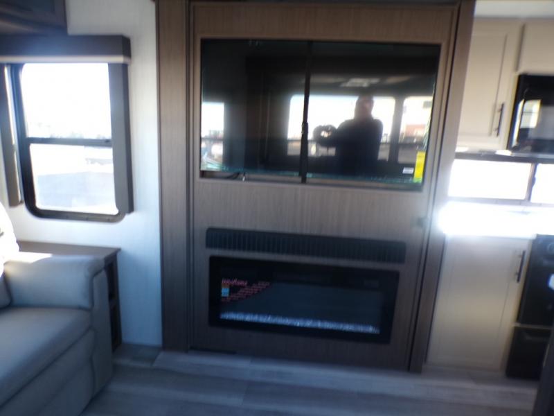 Spend more time having fun and less time worrying about your RV with the Keystone Cougar fifth wheel! These units have all that you will need for excellent vacations. The interior comes with 5/8" one-piece DynaSpan® flooring, tall slide outs for added comfort and head room, night roller shades throughout, and residential, shaker style hardwood cabinet doors and drawers. You will also enjoy decorative crown molding, a 5,500 BTU electric fireplace with thermostat control and remote, and a Max Air exhaust fan with rain sensor. The exterior is also fully outfitted with a convenience center, friction-hinge entry door, electric four-point auto leveling system, and slam-latch baggage doors. Each model is available with the optional Hero Edition. By choosing this edition, you can help support our nation's heros and their families by contributing to the Wounded Warrior Project. This optional package features an industry exclusive full-body paint matte finish, frameless windows, a glass entry door, blackout rims, and green LED exterior accent lighting; see dealer for more details!