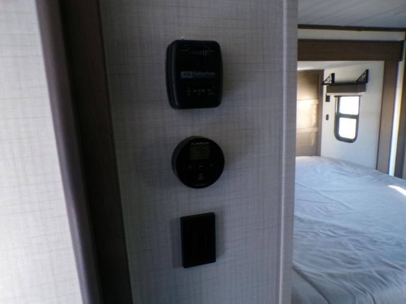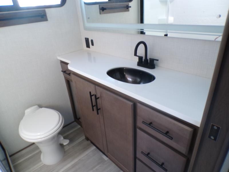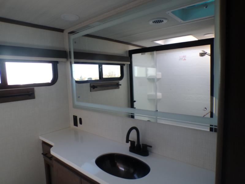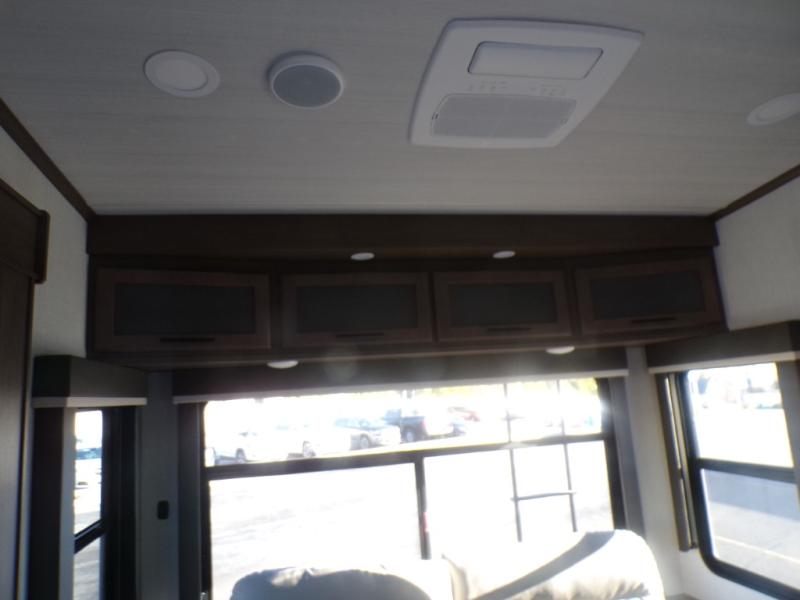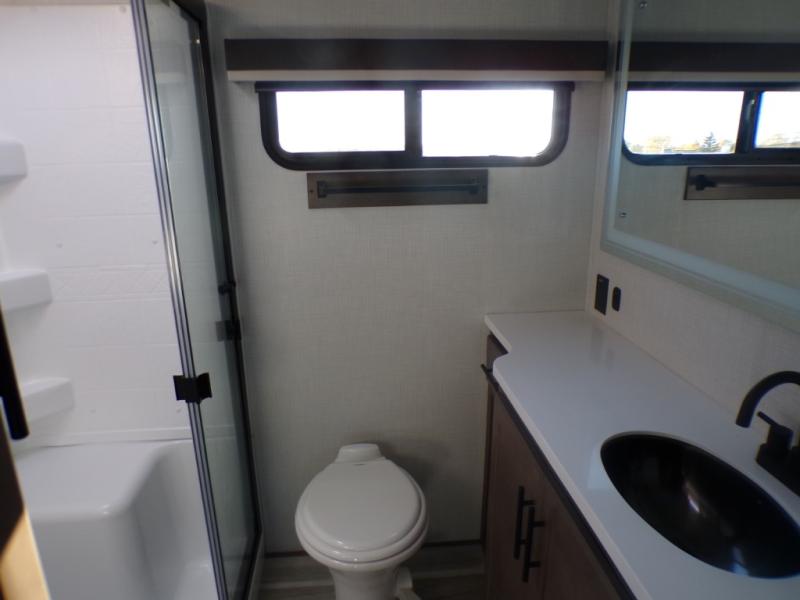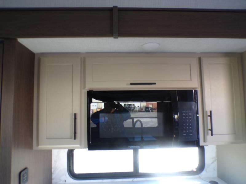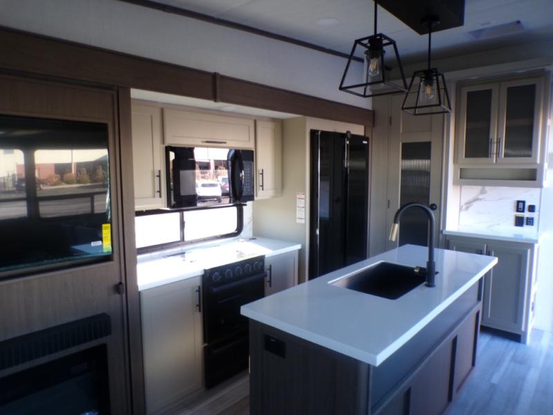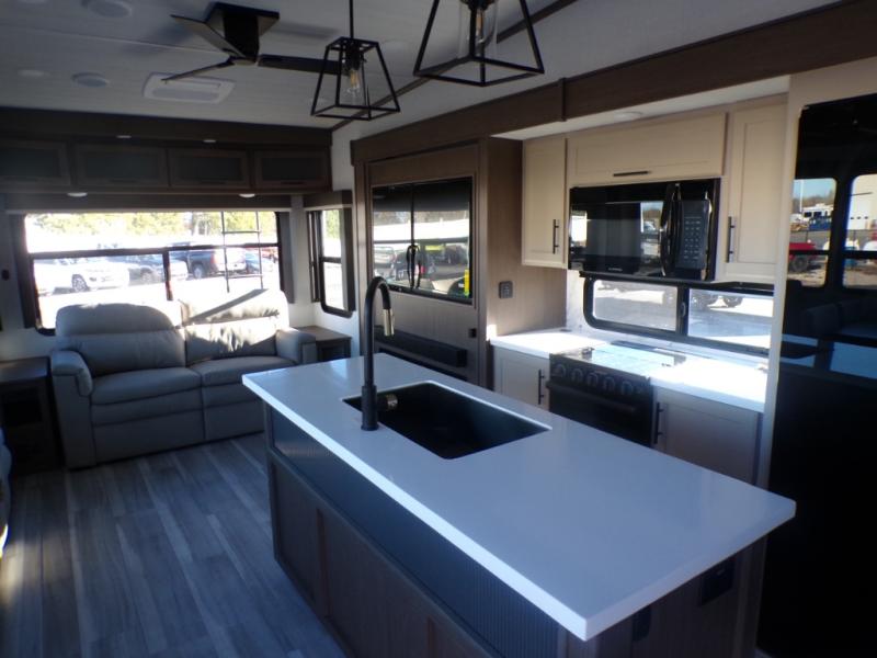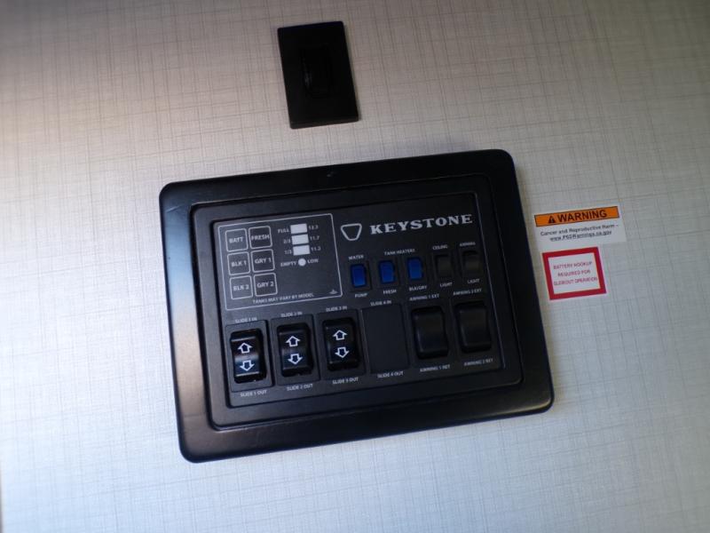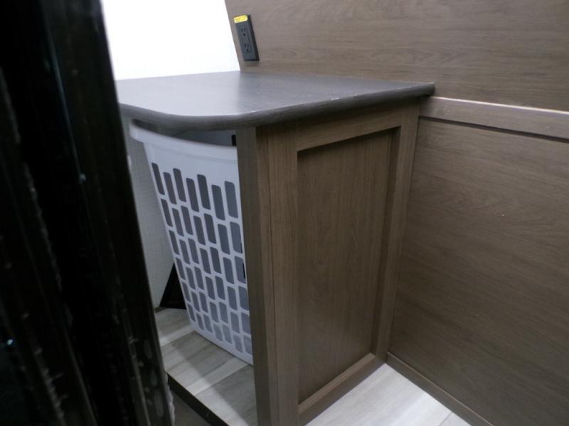 The dual opposing slides in the combined kitchen and living area will give you an open floorplan! You'll sleep on the queen-size bed in the front private bedroom, and there is under-bed storage, a full-height wardrobe, and a dresser with hidden storage for all of your personal belongings. As you spend time in the main living area, you'll appreciate having extra space thanks to the set of opposing slides, and the kitchen island will be easy to work around. You'll be able to relax on the tri-fold sleeper sofa and theater seating while you watch the LED HDTV with an pivoting entertainment door and hidden pantry. There is also a booth dinette with storage drawers, convenient shoe storage right as you enter the unit, and an exterior unobstructed pass-thru storage so nothing gets left behind.