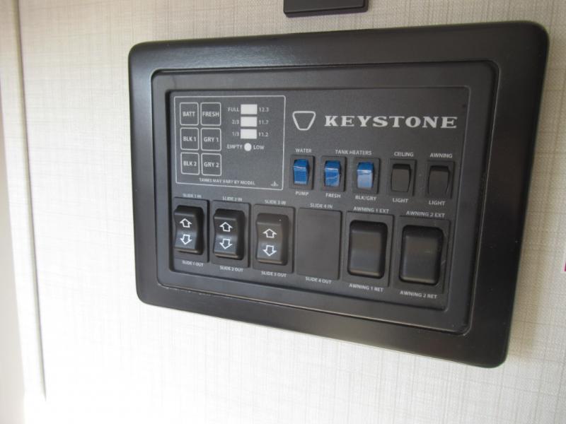 Spend more time having fun and less time worrying about your RV with the Keystone Cougar fifth wheel! These units have all that you will need for excellent vacations. The interior comes with 5/8" one-piece DynaSpan® flooring, tall slide outs for added comfort and head room, night roller shades throughout, and residential, shaker style hardwood cabinet doors and drawers. You will also enjoy decorative crown molding, a 5,500 BTU electric fireplace with thermostat control and remote, and a Max Air exhaust fan with rain sensor. The exterior is also fully outfitted with a convenience center, friction-hinge entry door, electric four-point auto leveling system, and slam-latch baggage doors. Each model is available with the optional Hero Edition. By choosing this edition, you can help support our nation's heros and their families by contributing to the Wounded Warrior Project. This optional package features an industry exclusive full-body paint matte finish, frameless windows, a glass entry door, blackout rims, and green LED exterior accent lighting; see dealer for more details!