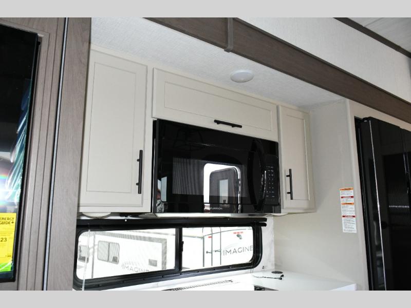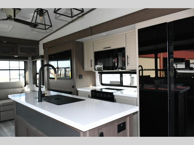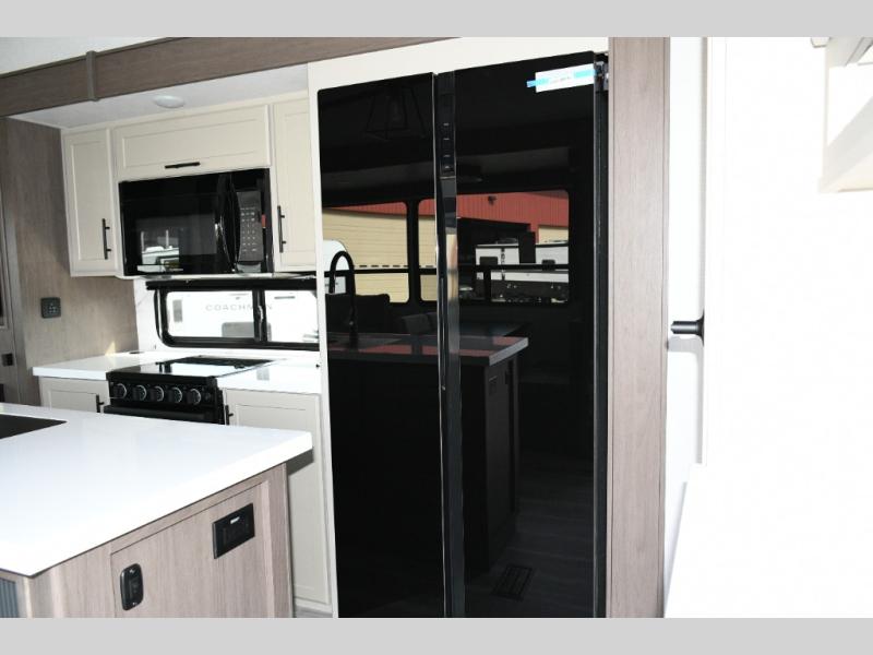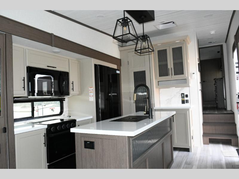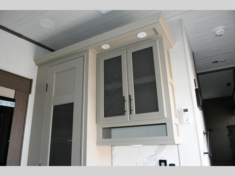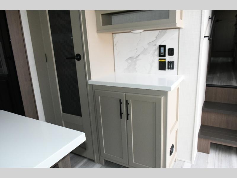 Tall slide-outs and residential shaker-style hardwood cabinets for an upscale feel