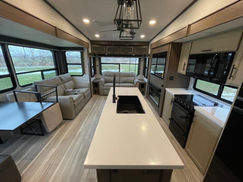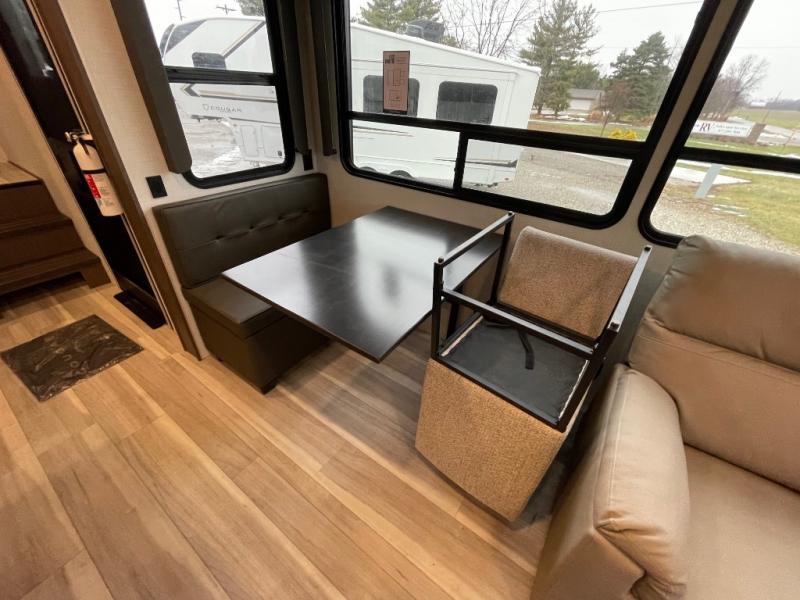 Spend more time having fun and less time worrying about your RV with the Keystone Cougar fifth wheel! These units have all that you will need for excellent vacations. The interior comes hardwood cabinet doors, solid surface kitchen countertops, an Oxygenics shower head and hose, plus a Vent-All window system. You will also appreciate the 12V charging stations throughout, the dual zone Bluetooth audio system, and the on-demand water heater for added comfort. The exterior is also fully outfitted with a convenience center, MaxTurn technology, Lippert axles with anti-lock braking system, and a Curt Road Armor shock absorbing equalizer for smooth towing. Each model is available with the optional Hero Edition. By choosing this edition, you can help support our nation's heros and their families by contributing to the Wounded Warrior Project. This optional package features an industry exclusive full-body paint matte finish, frameless windows, a glass entry door, blackout rims, and green LED exterior accent lighting; see dealer for more details!