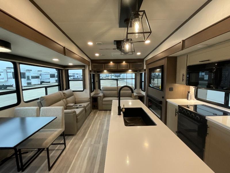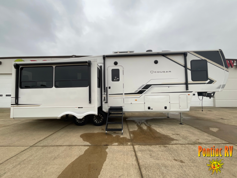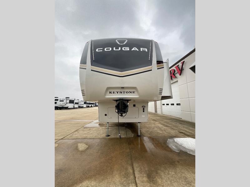 Spend more time having fun and less time worrying about your RV with the Keystone Cougar fifth wheel! These units have all that you will need for excellent vacations. The interior comes hardwood cabinet doors, solid surface kitchen countertops, an Oxygenics shower head and hose, plus a Vent-All window system. You will also appreciate the 12V charging stations throughout, the dual zone Bluetooth audio system, and the on-demand water heater for added comfort. The exterior is also fully outfitted with a convenience center, MaxTurn technology, Lippert axles with anti-lock braking system, and a Curt Road Armor shock absorbing equalizer for smooth towing. Each model is available with the optional Hero Edition. By choosing this edition, you can help support our nation's heros and their families by contributing to the Wounded Warrior Project. This optional package features an industry exclusive full-body paint matte finish, frameless windows, a glass entry door, blackout rims, and green LED exterior accent lighting; see dealer for more details!