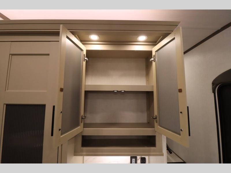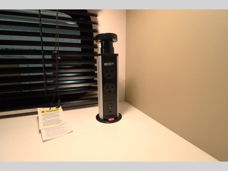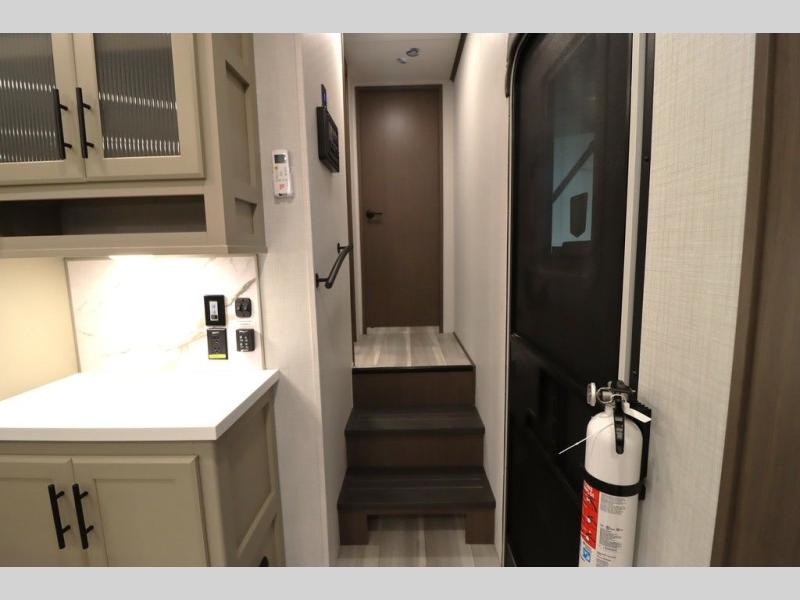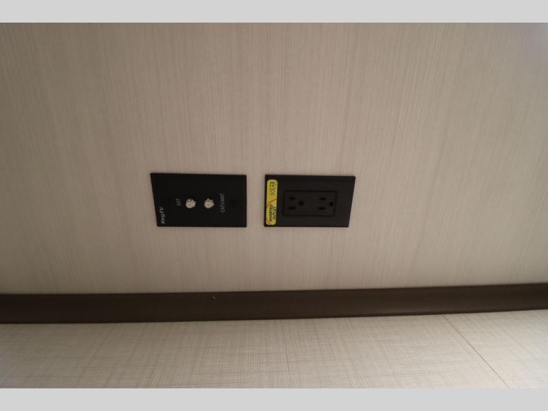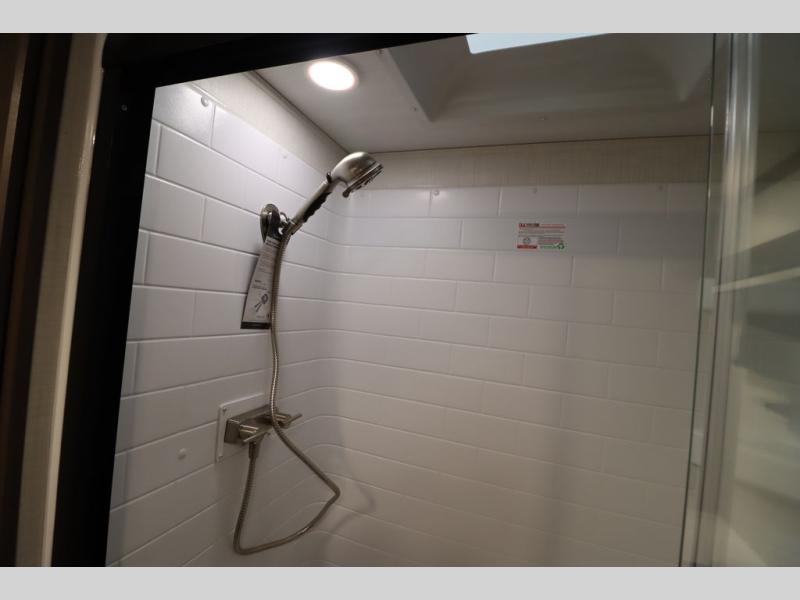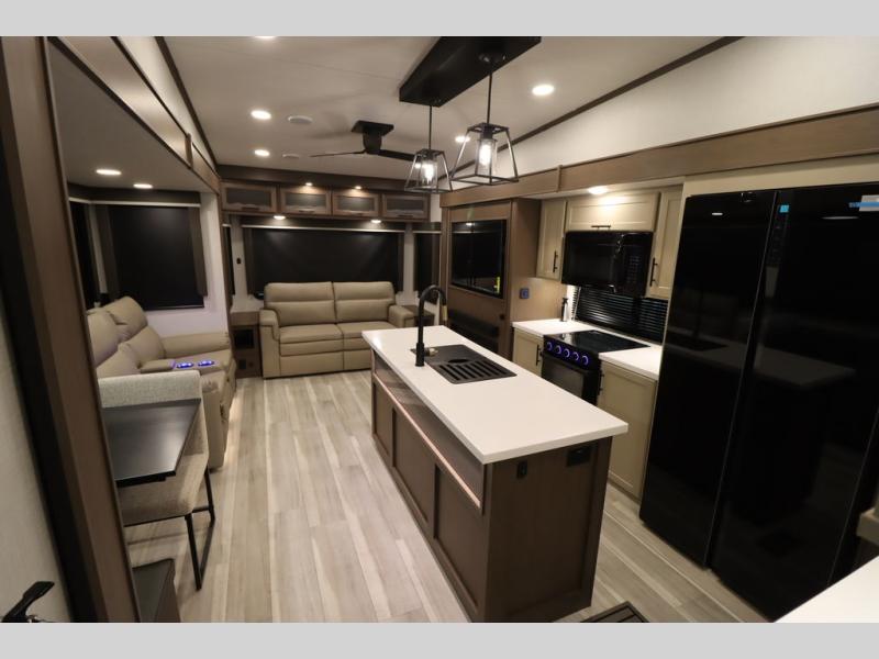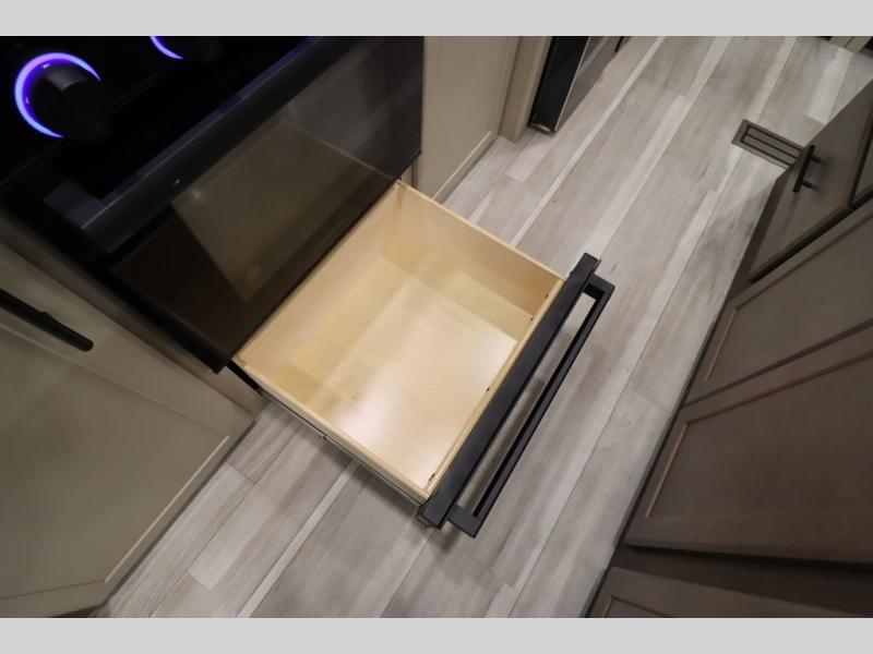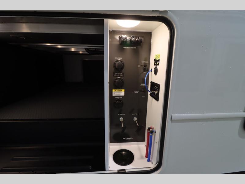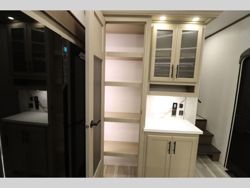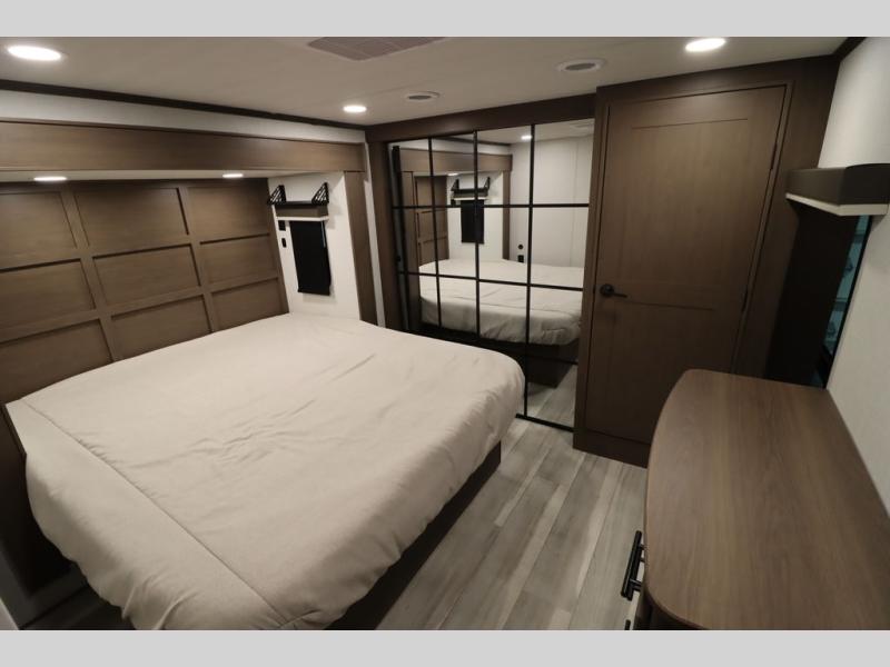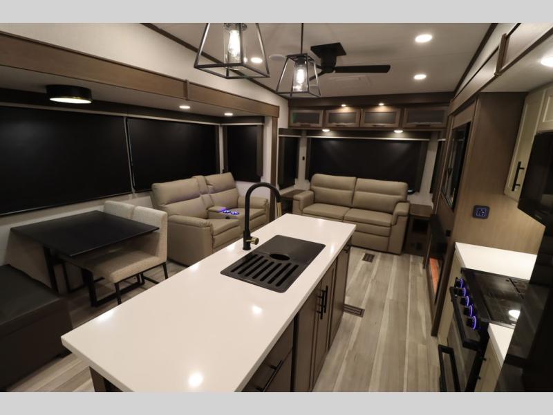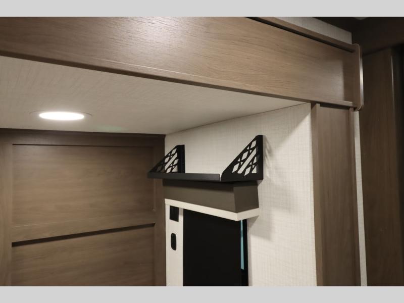 The dual opposing slides in the combined kitchen and living area will give you an open floorplan! You'll sleep on the queen-size bed in the front private bedroom, and there is under-bed storage, a full-height wardrobe, and a dresser with hidden storage for all of your personal belongings. As you spend time in the main living area, you'll appreciate having extra space thanks to the set of opposing slides, and the kitchen island will be easy to work around. You'll be able to relax on the tri-fold sleeper sofa and theater seating while you watch the LED HDTV with an pivoting entertainment door and hidden pantry. There is also a booth dinette with storage drawers, convenient shoe storage right as you enter the unit, and an exterior unobstructed pass-thru storage so nothing gets left behind.