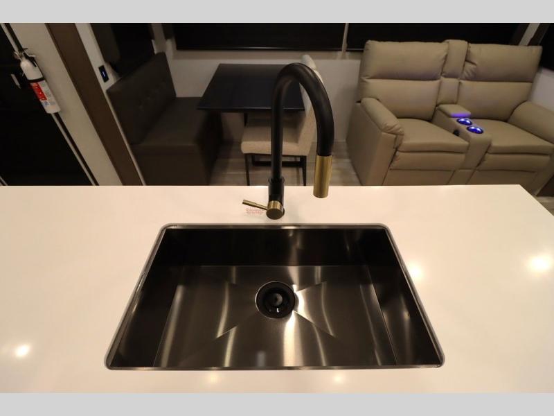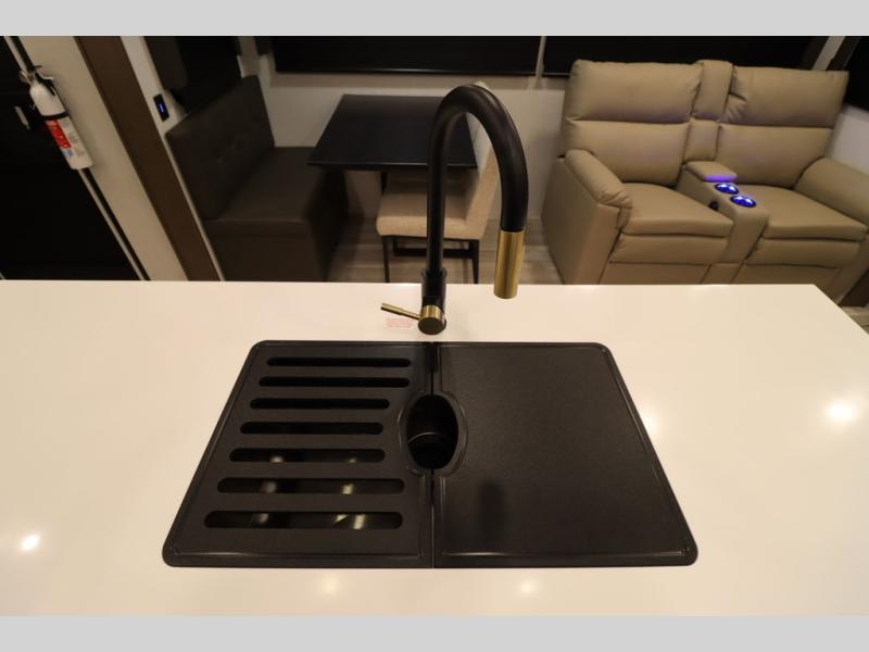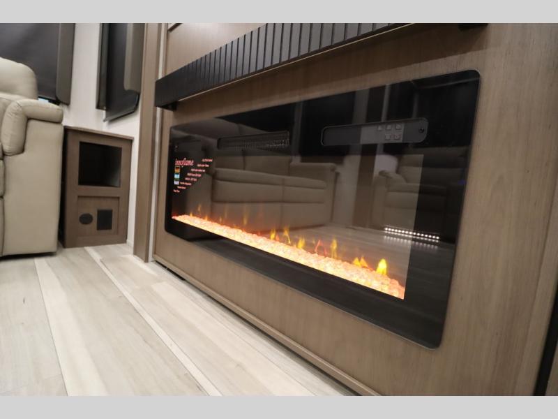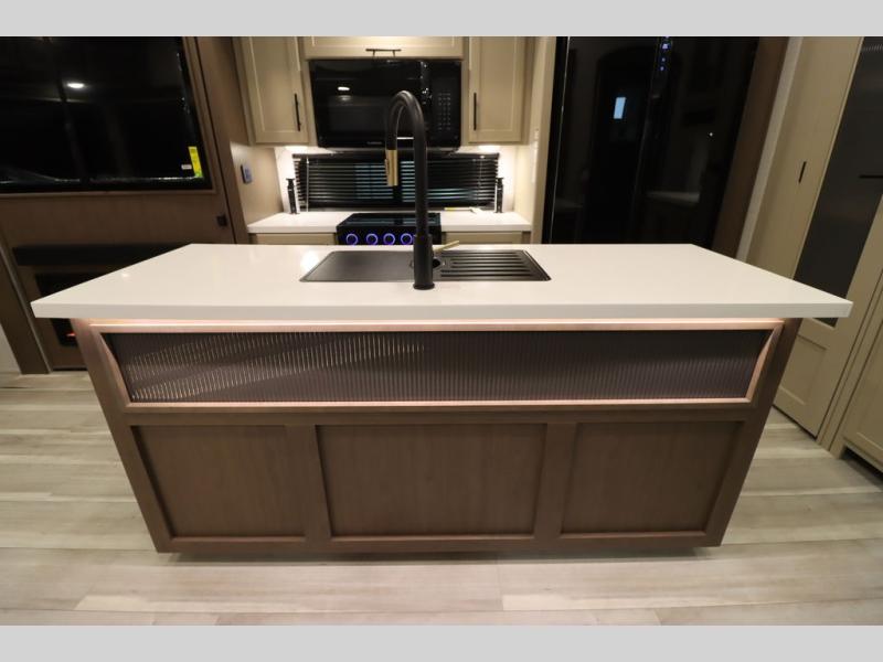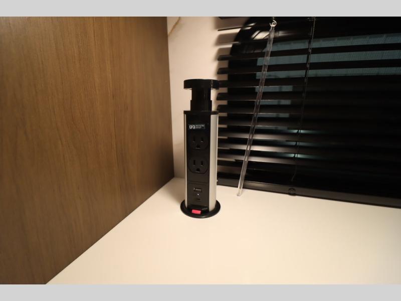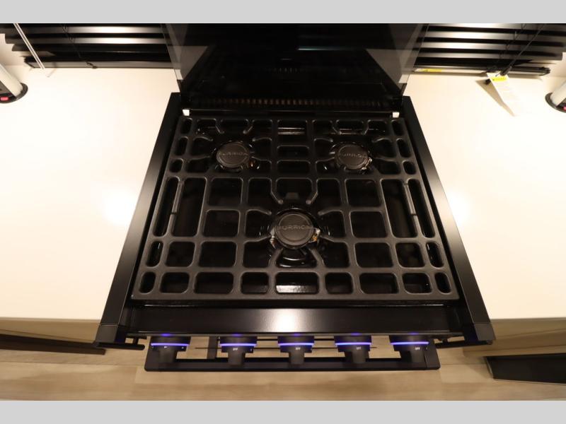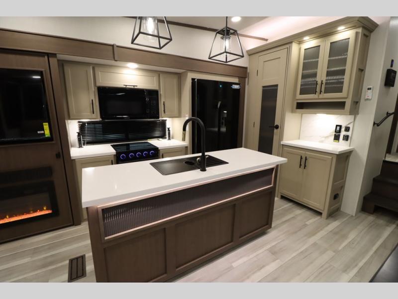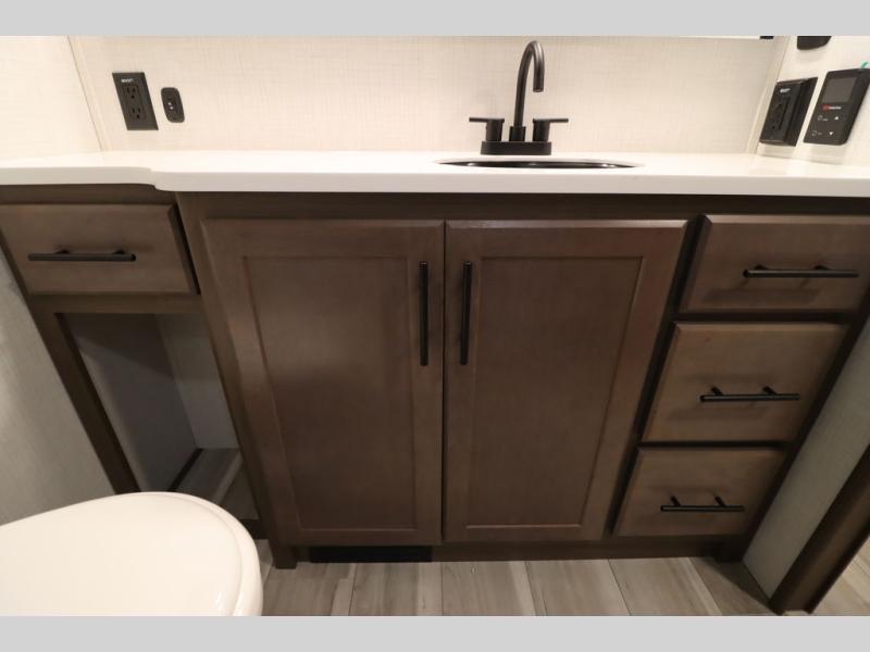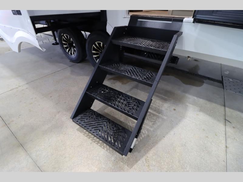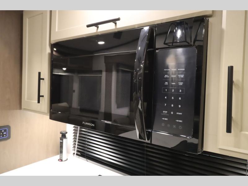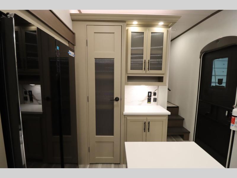 The dual opposing slides in the combined kitchen and living area will give you an open floorplan! You'll sleep on the queen-size bed in the front private bedroom, and there is under-bed storage, a full-height wardrobe, and a dresser with hidden storage for all of your personal belongings. As you spend time in the main living area, you'll appreciate having extra space thanks to the set of opposing slides, and the kitchen island will be easy to work around. You'll be able to relax on the tri-fold sleeper sofa and theater seating while you watch the LED HDTV with an pivoting entertainment door and hidden pantry. There is also a booth dinette with storage drawers, convenient shoe storage right as you enter the unit, and an exterior unobstructed pass-thru storage so nothing gets left behind.
