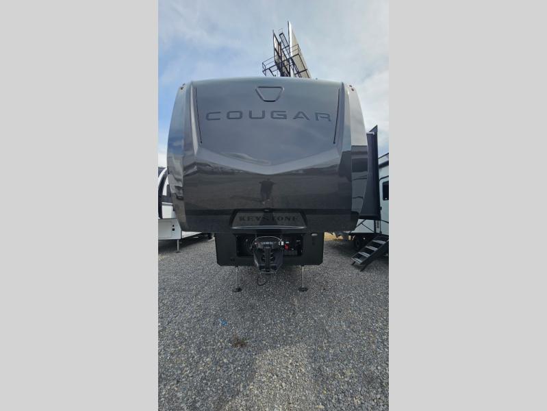 Spend more time having fun and less time worrying about your RV with the Keystone Cougar fifth wheel! These units have all that you will need for excellent vacations. The interior comes hardwood cabinet doors, solid surface kitchen countertops, an Oxygenics shower head and hose, plus a Vent-All window system. You will also appreciate the 12V charging stations throughout, the dual zone Bluetooth audio system, and the on-demand water heater for added comfort. The exterior is also fully outfitted with a convenience center, MaxTurn technology, Lippert axles with anti-lock braking system, and a Curt Road Armor shock absorbing equalizer for smooth towing. Each model is available with the optional Hero Edition. By choosing this edition, you can help support our nation's heros and their families by contributing to the Wounded Warrior Project. This optional package features an industry exclusive full-body paint matte finish, frameless windows, a glass entry door, blackout rims, and green LED exterior accent lighting; see dealer for more details!