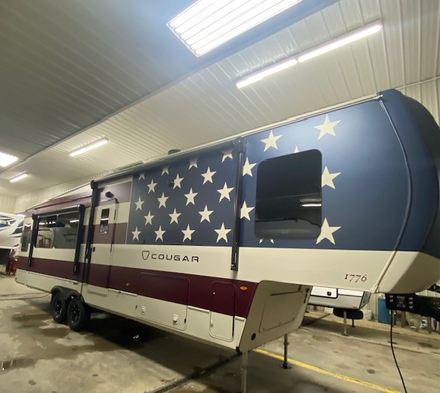Spend more time having fun and less time worrying about your RV with the Keystone Cougar fifth wheel! These units have all that you will need for excellent vacations. The interior comes hardwood cabinet doors, solid surface kitchen countertops, an Oxygenics shower head and hose, plus a Vent-All window system. You will also appreciate the 12V charging stations throughout, the dual zone Bluetooth audio system, and the on-demand water heater for added comfort. The exterior is also fully outfitted with a convenience center, MaxTurn technology, Lippert axles with anti-lock braking system, and a Curt Road Armor shock absorbing equalizer for smooth towing. Each model is available with the optional Hero Edition. By choosing this edition, you can help support our nation's heros and their families by contributing to the Wounded Warrior Project. This optional package features an industry exclusive full-body paint matte finish, frameless windows, a glass entry door, blackout rims, and green LED exterior accent lighting; see dealer for more details!