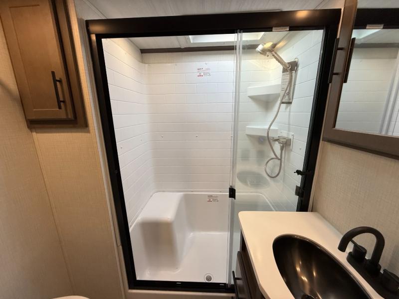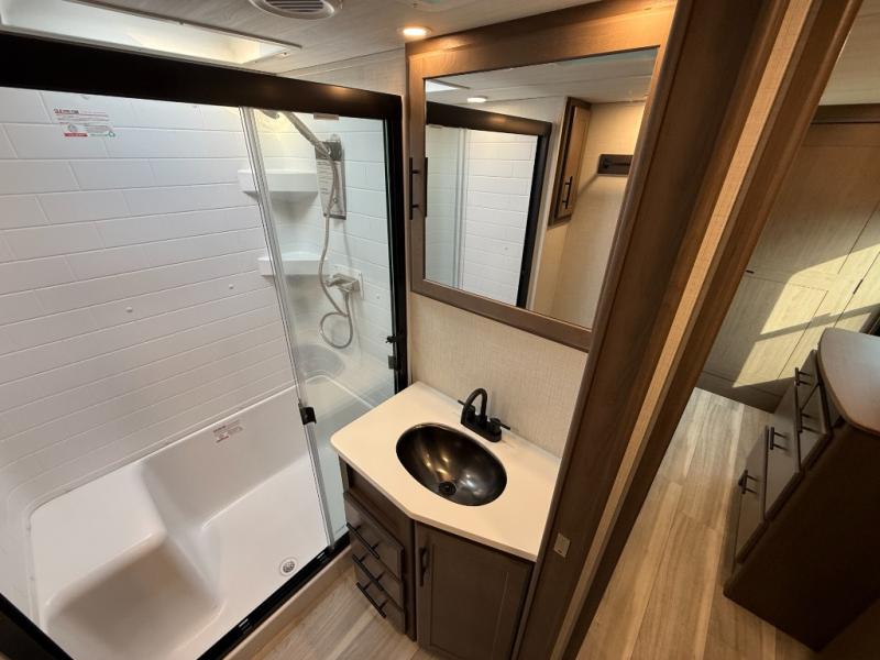 Spend more time having fun and less time worrying about your RV with the Keystone Cougar fifth wheel! These units have all that you will need for excellent vacations. The interior comes hardwood cabinet doors, solid surface kitchen countertops, an Oxygenics shower head and hose, plus a Vent-All window system. You will also appreciate the 12V charging stations throughout, the dual zone Bluetooth audio system, and the on-demand water heater for added comfort. The exterior is also fully outfitted with a convenience center, MaxTurn technology, Lippert axles with anti-lock braking system, and a Curt Road Armor shock absorbing equalizer for smooth towing. Each model is available with the optional Hero Edition. By choosing this edition, you can help support our nation's heros and their families by contributing to the Wounded Warrior Project. This optional package features an industry exclusive full-body paint matte finish, frameless windows, a glass entry door, blackout rims, and green LED exterior accent lighting; see dealer for more details!