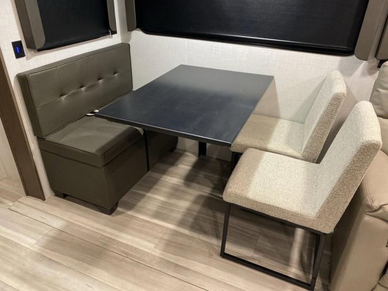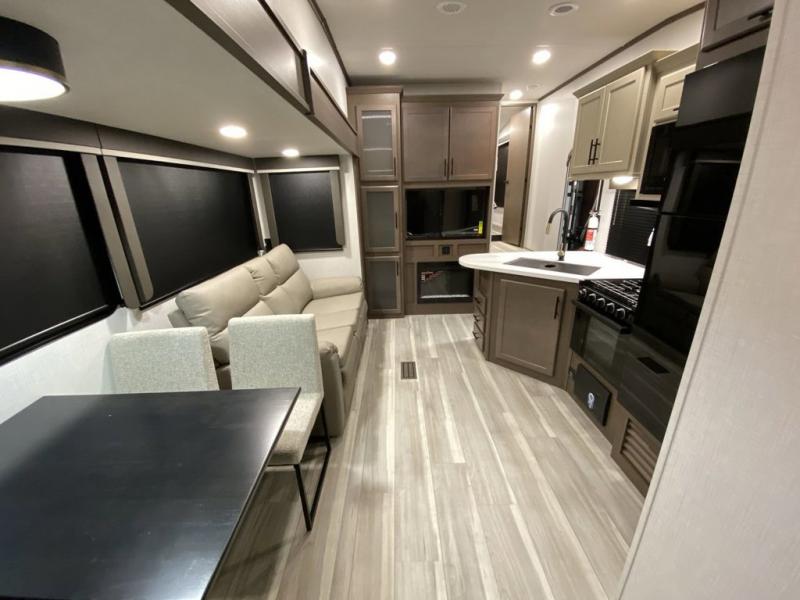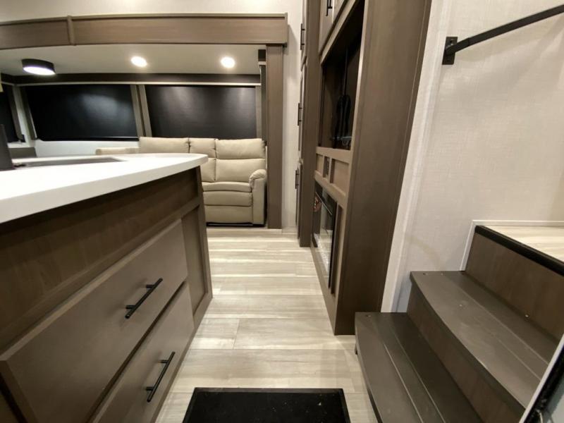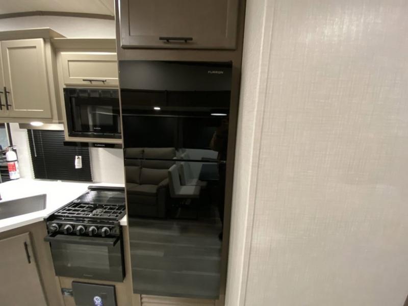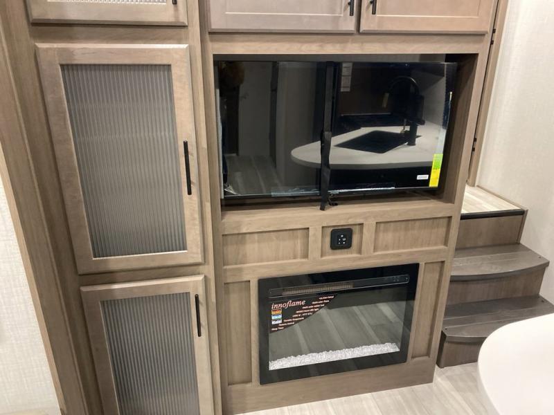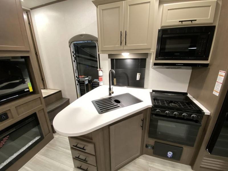 You won't have any trouble convincing your friends or family to join you on an adventure with this Cougar Half-Ton fifth wheel! Since this unit has both a full and a half bathroom, it will be easy for everyone to get ready in the morning, and the 21" Furrion range will allow you to whip up a full batch of pancakes for your guests. Store any leftovers in the 12V refrigerator before heading out on your next exciting expedition. If you need your backpacks and hiking gear, you can grab them from the exterior pass-through storage, and you will enjoy the cozy living space with the fireplace!