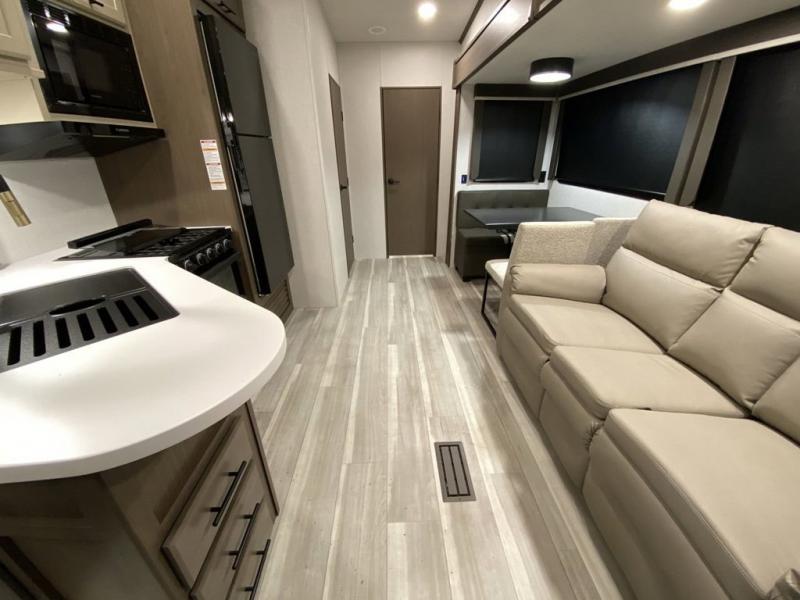 The Keystone Cougar Half-Ton fifth wheel and travel trailers are known as one of America's favorites for a reason! Some of those reasons are the exclusive features that come from Keystone, like the Winegard Air 360+ omni-directional rooftop antenna, the in-floor heating ducts, and the HyperCore composite wall construction with Vixen Fibrogloss high-gloss finish. The Cougar Half-Ton has a Climate Guard protection package with heat-deflecting white sidewalls, two roof attic vents, PEX plumbing and more to enjoy four season camping. Inside, you'll love the dimmable lighting, night roller shades throughout, shower skylight, and bedside USB outlets to keep your electronics charged.