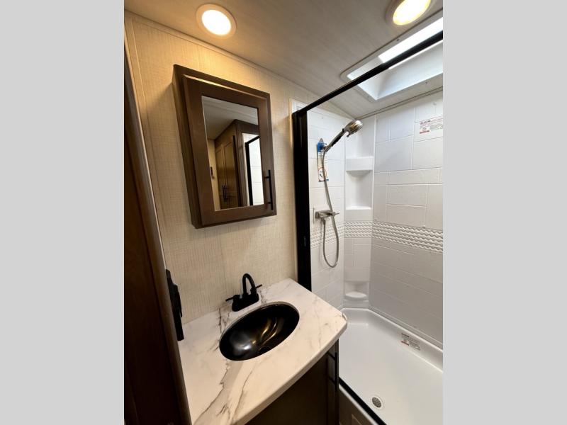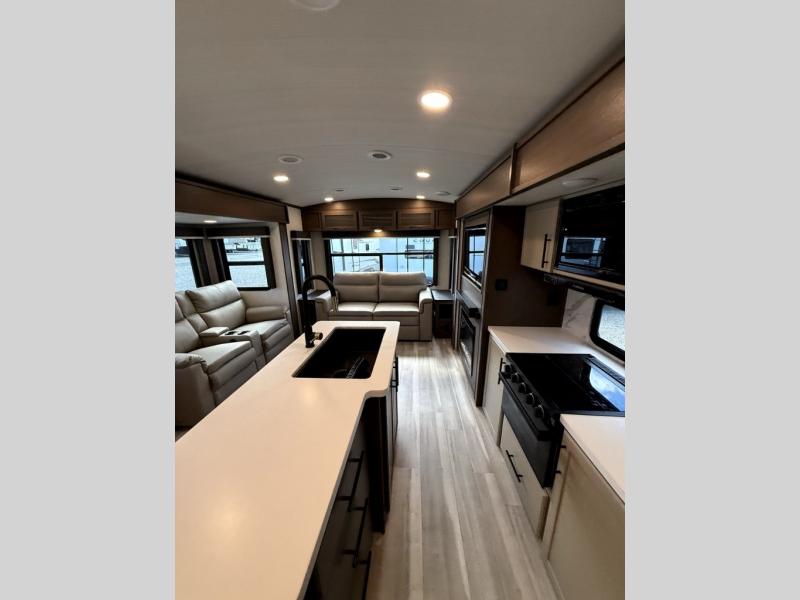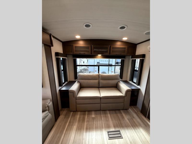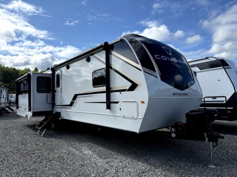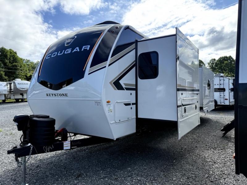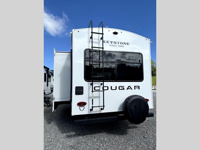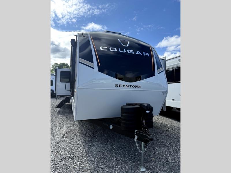 The Keystone Cougar Half-Ton fifth wheel and travel trailers are known as one of America's favorites for a reason! Some of those reasons are the exclusive features that come from Keystone, like the Winegard Air 360+ omni-directional rooftop antenna, the in-floor heating ducts, and the HyperCore composite wall construction with Vixen Fibrogloss high-gloss finish. The Cougar Half-Ton has a Climate Guard protection package with heat-deflecting white sidewalls, two roof attic vents, PEX plumbing and more to enjoy four season camping. Inside, you'll love the dimmable lighting, night roller shades throughout, shower skylight, and bedside USB outlets to keep your electronics charged.
