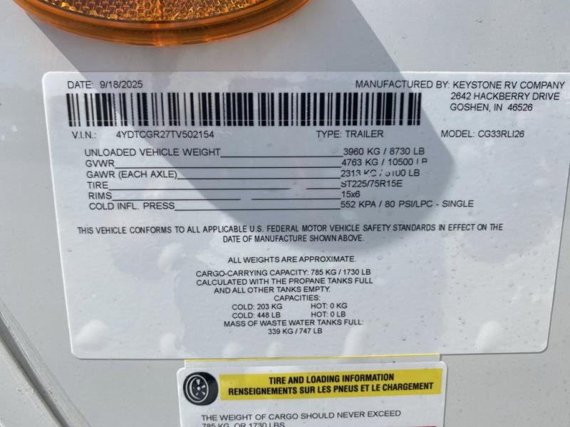 New 2026 Keystone RV Cougar 33RLI Travel Trailer