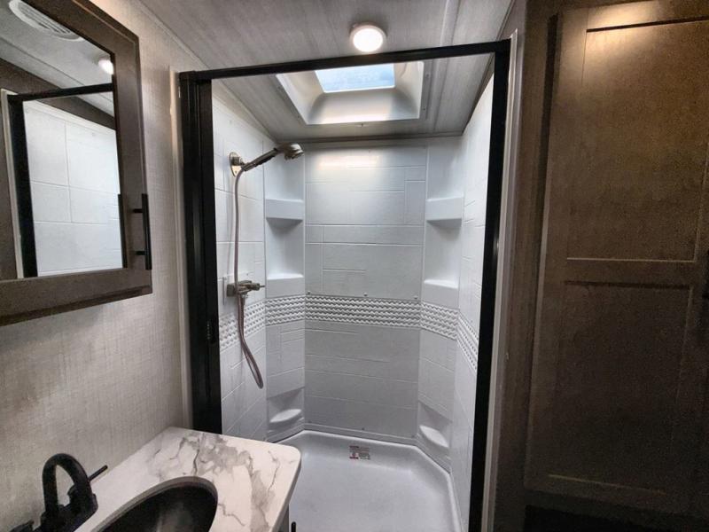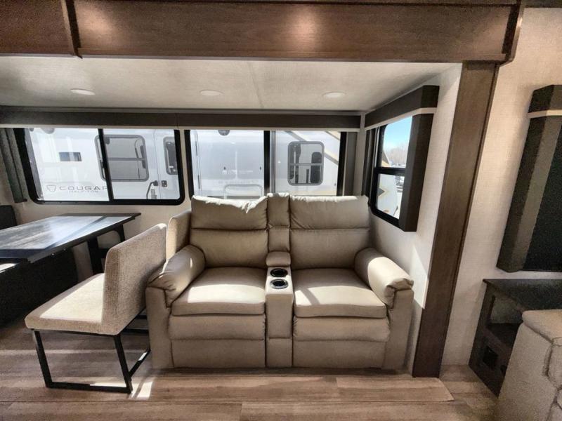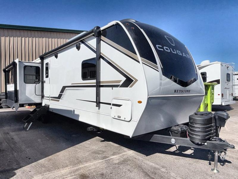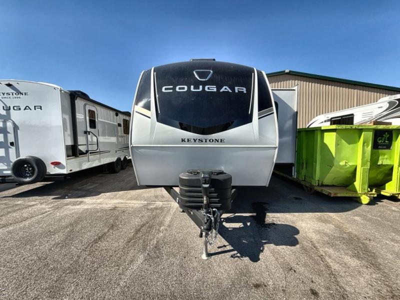 The Keystone Cougar Half-Ton fifth wheel and travel trailers are known as one of America's favorites for a reason! Some of those reasons are the exclusive features that come from Keystone, like the Winegard Air 360+ omni-directional rooftop antenna, the in-floor heating ducts, and the HyperCore composite wall construction with Vixen Fibrogloss high-gloss finish. The Cougar Half-Ton has a Climate Guard protection package with heat-deflecting white sidewalls, two roof attic vents, PEX plumbing and more to enjoy four season camping. Inside, you'll love the dimmable lighting, night roller shades throughout, shower skylight, and bedside USB outlets to keep your electronics charged.