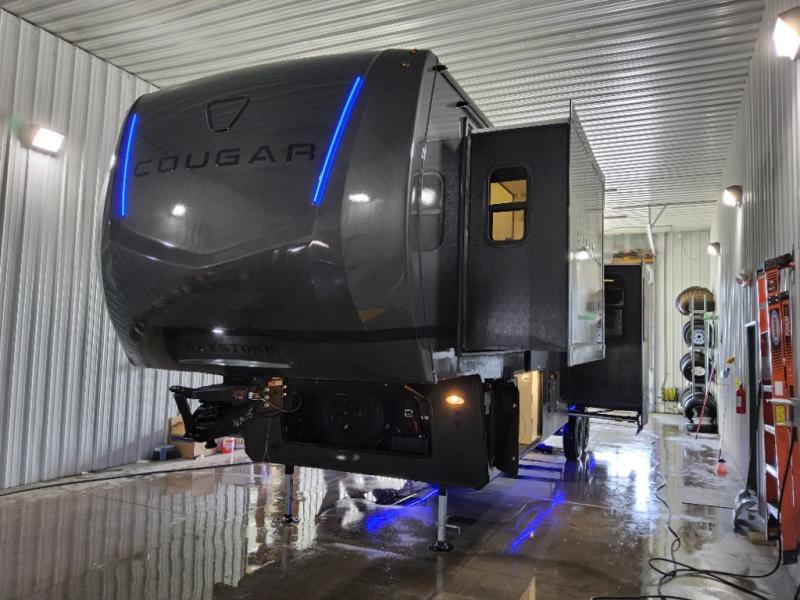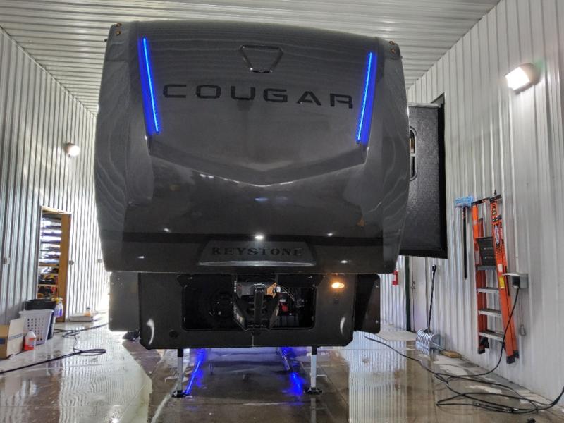 Spend more time having fun and less time worrying about your RV with the Keystone Cougar fifth wheel! These units have all that you will need for excellent vacations. The interior comes hardwood cabinet doors, solid surface kitchen countertops, an Oxygenics shower head and hose, plus a Vent-All window system. You will also appreciate the 12V charging stations throughout, the dual zone Bluetooth audio system, and the on-demand water heater for added comfort. The exterior is also fully outfitted with a convenience center, MaxTurn technology, Lippert axles with anti-lock braking system, and a Curt Road Armor shock absorbing equalizer for smooth towing. Each model is available with the optional Hero Edition. By choosing this edition, you can help support our nation's heros and their families by contributing to the Wounded Warrior Project. This optional package features an industry exclusive full-body paint matte finish, frameless windows, a glass entry door, blackout rims, and green LED exterior accent lighting; see dealer for more details!
