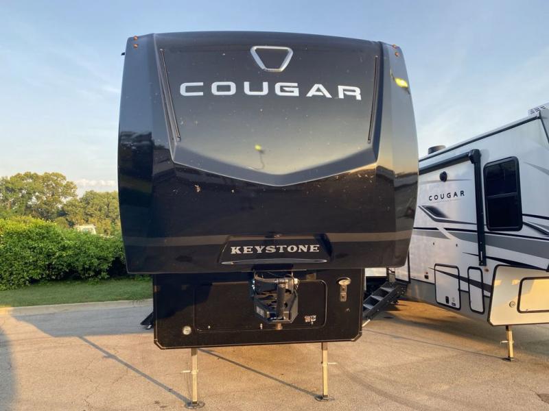 Spend more time having fun and less time worrying about your RV with the Keystone Cougar fifth wheel! These units have all that you will need for excellent vacations. The interior comes with 5/8" one-piece DynaSpan® flooring, tall slide outs for added comfort and head room, night roller shades throughout, and residential, raised-panel hardwood cabinet doors and drawers. You will also enjoy decorative crown molding, a 5,500 BTU electric fireplace with thermostat control and remote, and a Max Air exhaust fan with rain sensor. The exterior is also fully outfitted with a convenience center, friction-hinge entry door, electric four-point auto leveling system, and Lippert SolidStep® on the main entry. Each model is available with the optional Hero Edition. By choosing this edition, you can help support our nation's heros and their families by contributing to the Wounded Warrior Project. This optional package features an industry exclusive full-body paint matte finish, frameless windows, a glass entry door, blackout rims, and green LED exterior accent lighting; see dealer for more details!