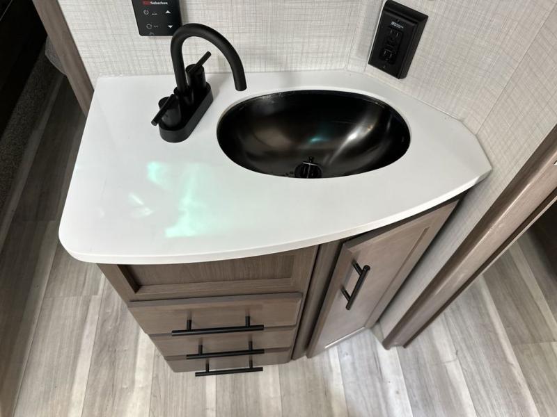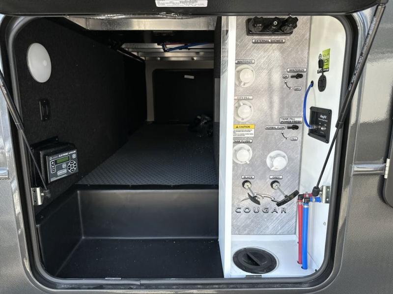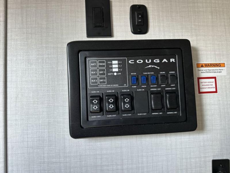 Spend more time having fun and less time worrying about your RV with the Keystone Cougar fifth wheel! These units have all that you will need for excellent vacations. The interior comes with 5/8" one-piece DynaSpan® flooring, tall slide outs for added comfort and head room, night roller shades throughout, and residential, shaker style hardwood cabinet doors and drawers. You will also enjoy decorative crown molding, a 5,500 BTU electric fireplace with thermostat control and remote, and a Max Air exhaust fan with rain sensor. The exterior is also fully outfitted with a convenience center, friction-hinge entry door, electric four-point auto leveling system, and slam-latch baggage doors. Each model is available with the optional Hero Edition. By choosing this edition, you can help support our nation's heros and their families by contributing to the Wounded Warrior Project. This optional package features an industry exclusive full-body paint matte finish, frameless windows, a glass entry door, blackout rims, and green LED exterior accent lighting; see dealer for more details!
