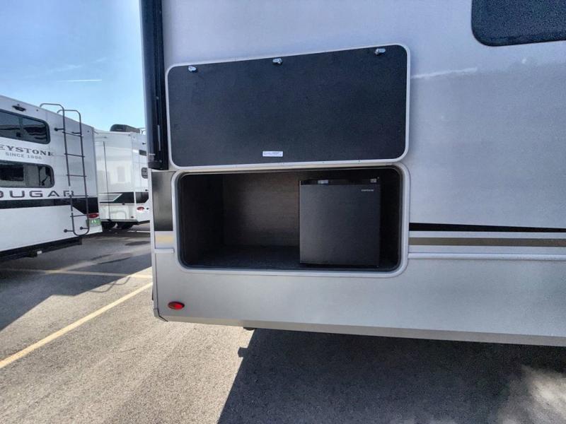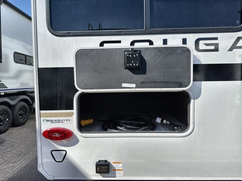 Spend more time having fun and less time worrying about your RV with the Keystone Cougar fifth wheel! These units have all that you will need for excellent vacations. The interior comes hardwood cabinet doors, solid surface kitchen countertops, an Oxygenics shower head and hose, plus a Vent-All window system. You will also appreciate the 12V charging stations throughout, the dual zone Bluetooth audio system, and the on-demand water heater for added comfort. The exterior is also fully outfitted with a convenience center, MaxTurn technology, Lippert axles with anti-lock braking system, and a Curt Road Armor shock absorbing equalizer for smooth towing. Each model is available with the optional Hero Edition. By choosing this edition, you can help support our nation's heros and their families by contributing to the Wounded Warrior Project. This optional package features an industry exclusive full-body paint matte finish, frameless windows, a glass entry door, blackout rims, and green LED exterior accent lighting; see dealer for more details!
