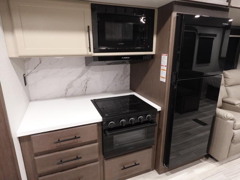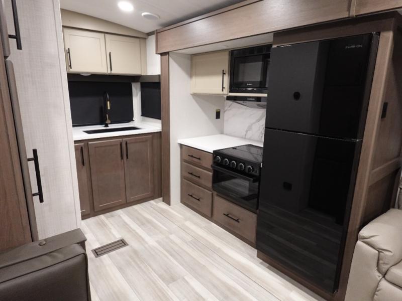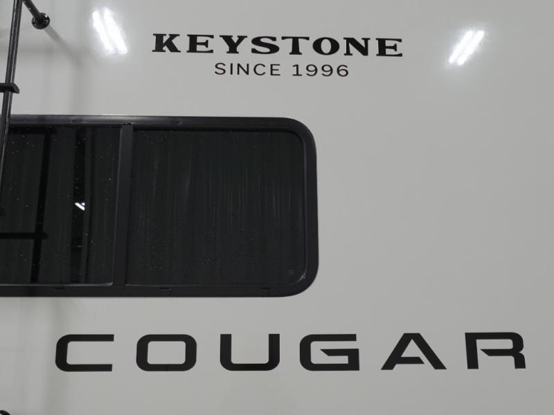 The Keystone Cougar Half-Ton fifth wheel and travel trailers are known as one of America's favorites for a reason! Some of those reasons are the exclusive features that come from Keystone, like the Winegard Air 360+ omni-directional rooftop antenna, the in-floor heating ducts, and the HyperCore composite wall construction with Vixen Fibrogloss high-gloss finish. The Cougar Half-Ton has a Climate Guard protection package with heat-deflecting white sidewalls, two roof attic vents, PEX plumbing and more to enjoy four season camping. Inside, you'll love the dimmable lighting, night roller shades throughout, shower skylight, and bedside USB outlets to keep your electronics charged.