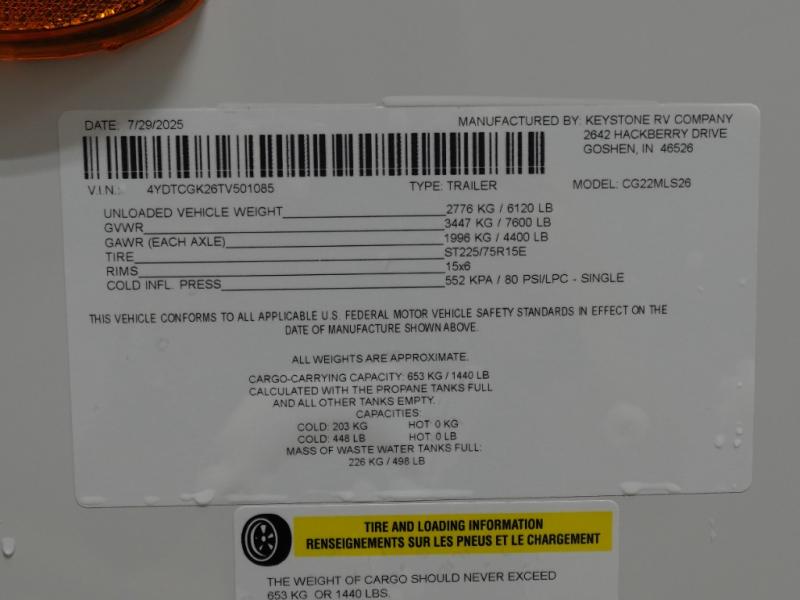 New 2026 Keystone RV Cougar Half-Ton 22MLS Travel Trailer