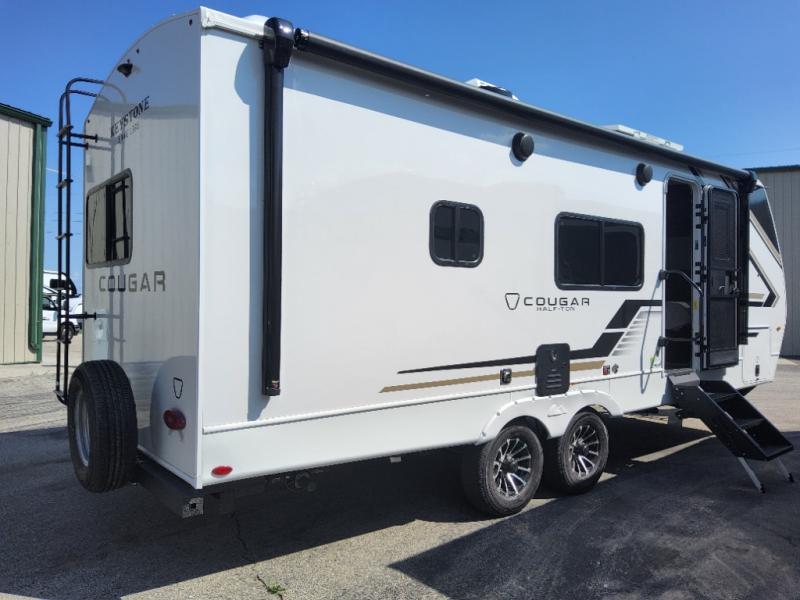 The Keystone Cougar Half-Ton fifth wheel and travel trailers are known as one of America's favorites for a reason! Some of those reasons are the exclusive features that come from Keystone, like the Winegard Air 360+ omni-directional rooftop antenna, the in-floor heating ducts, and the HyperCore composite wall construction with Vixen Fibrogloss high-gloss finish. The Cougar Half-Ton has a Climate Guard protection package with heat-deflecting white sidewalls, two roof attic vents, PEX plumbing and more to enjoy four season camping. Inside, you'll love the dimmable lighting, night roller shades throughout, shower skylight, and bedside USB outlets to keep your electronics charged.