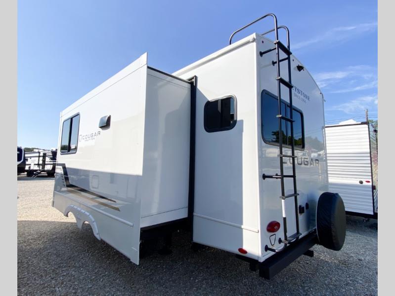 The Keystone Cougar Half-Ton fifth wheel and travel trailers are known as one of America's favorites for a reason! Some of those reasons are the exclusive features that come from Keystone, like the Winegard Air 360+ omni-directional rooftop antenna, the in-floor heating ducts, and the HyperCore composite wall construction with Vixen Fibrogloss high-gloss finish. The Cougar Half-Ton has a Climate Guard protection package with heat-deflecting white sidewalls, two roof attic vents, PEX plumbing and more to enjoy four season camping. Inside, you'll love the dimmable lighting, night roller shades throughout, shower skylight, and bedside USB outlets to keep your electronics charged.