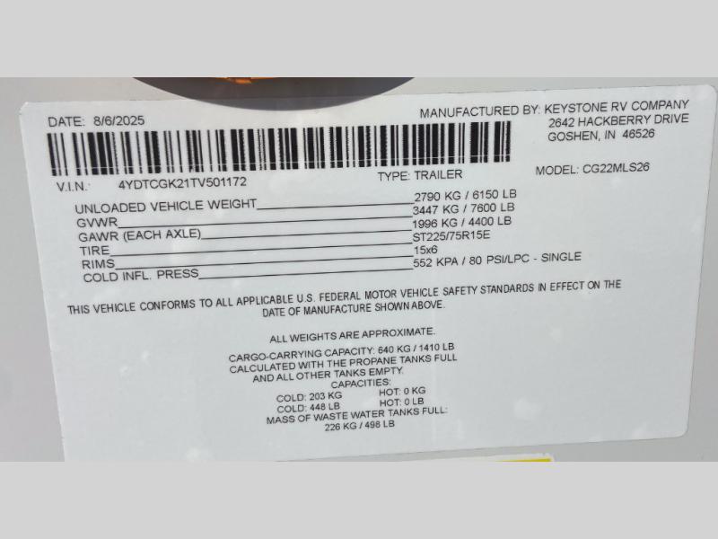 New 2026 Keystone RV Cougar Half-Ton 22MLS Travel Trailer