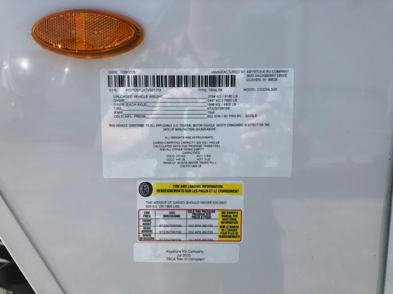 New 2026 Keystone RV Cougar Half-Ton 22MLS Travel Trailer