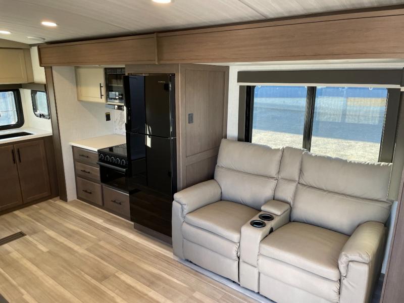 The Keystone Cougar Half-Ton fifth wheel and travel trailers are known as one of America's favorites for a reason! Some of those reasons are the exclusive features that come from Keystone, like the Winegard Air 360+ omni-directional rooftop antenna, the in-floor heating ducts, and the HyperCore composite wall construction with Vixen Fibrogloss high-gloss finish. The Cougar Half-Ton has a Climate Guard protection package with heat-deflecting white sidewalls, two roof attic vents, PEX plumbing and more to enjoy four season camping. Inside, you'll love the dimmable lighting, night roller shades throughout, shower skylight, and bedside USB outlets to keep your electronics charged.