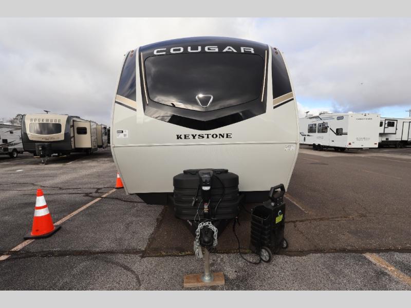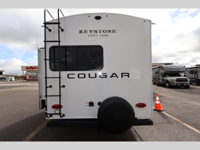 The Keystone Cougar Half-Ton fifth wheel and travel trailers are known as one of America's favorites for a reason! Some of those reasons are the exclusive features that come from Keystone, like the Winegard Air 360+ omni-directional rooftop antenna, the in-floor heating ducts, and the HyperCore composite wall construction with Vixen Fibrogloss high-gloss finish. The Cougar Half-Ton has a Climate Guard protection package with heat-deflecting white sidewalls, two roof attic vents, PEX plumbing and more to enjoy four season camping. Inside, you'll love the dimmable lighting, night roller shades throughout, shower skylight, and bedside USB outlets to keep your electronics charged.