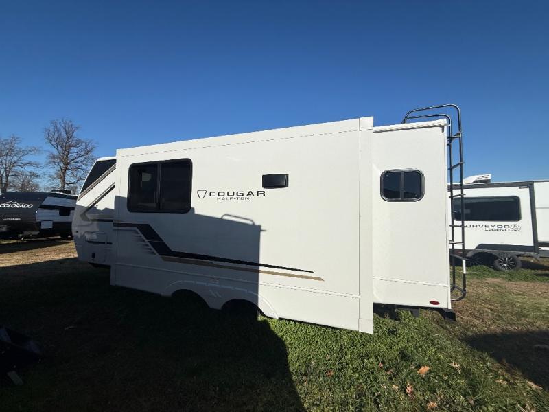 The Keystone Cougar Half-Ton fifth wheel and travel trailers are known as one of America's favorites for a reason! Some of those reasons are the exclusive features that come from Keystone, like the Winegard Air 360+ omni-directional rooftop antenna, the in-floor heating ducts, and the HyperCore composite wall construction with Vixen Fibrogloss high-gloss finish. The Cougar Half-Ton has a Climate Guard protection package with heat-deflecting white sidewalls, two roof attic vents, PEX plumbing and more to enjoy four season camping. Inside, you'll love the dimmable lighting, night roller shades throughout, shower skylight, and bedside USB outlets to keep your electronics charged.