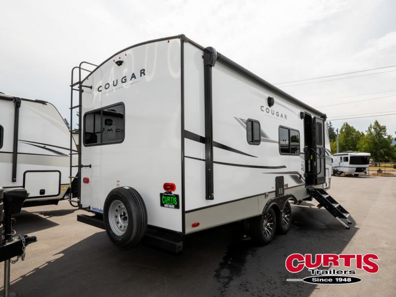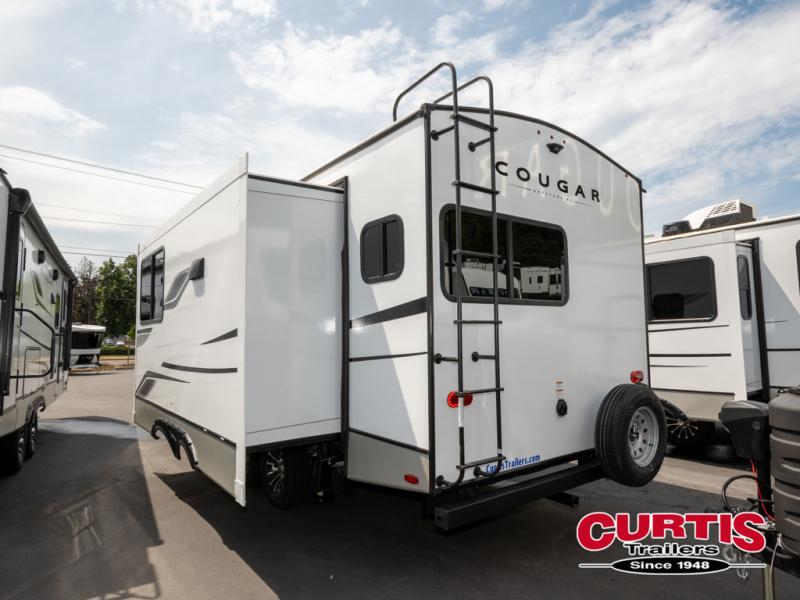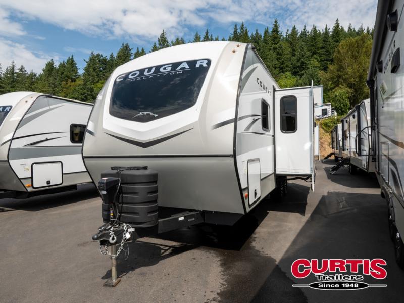 The Keystone Cougar Half-Ton fifth wheel and travel trailers are known as one of America's favorites for a reason! Some of those reasons are the exclusive features that come from Keystone, like the Winegard Air 360+ omni-directional rooftop antenna, the in-floor heating ducts, and the HyperCore composite wall construction with Vixen Fibrogloss high-gloss finish. The Cougar Half-Ton has a Climate Guard protection package with heat-deflecting white sidewalls, two roof attic vents, PEX plumbing and more to enjoy four season camping. Inside, you'll love the dimmable lighting, night roller shades throughout, shower skylight, and bedside USB outlets to keep your electronics charged.