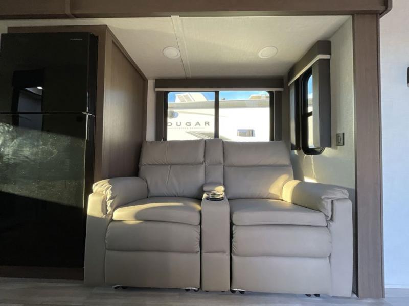 The Keystone Cougar Half-Ton fifth wheel and travel trailers are known as one of America's favorites for a reason! Some of those reasons are the exclusive features that come from Keystone, like the Winegard Air 360+ omni-directional rooftop antenna, the in-floor heating ducts, and the HyperCore composite wall construction with Vixen Fibrogloss high-gloss finish. The Cougar Half-Ton has a Climate Guard protection package with heat-deflecting white sidewalls, two roof attic vents, PEX plumbing and more to enjoy four season camping. Inside, you'll love the dimmable lighting, night roller shades throughout, shower skylight, and bedside USB outlets to keep your electronics charged.
