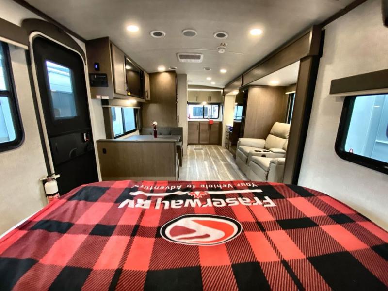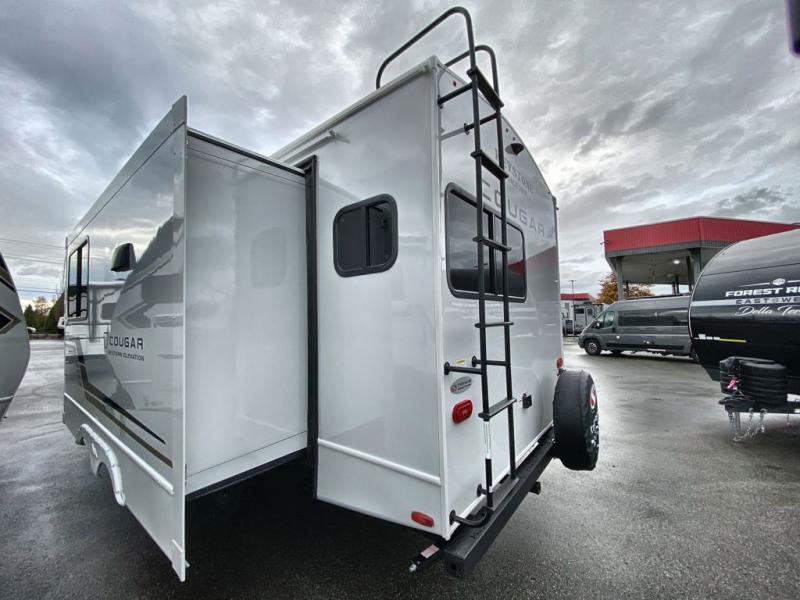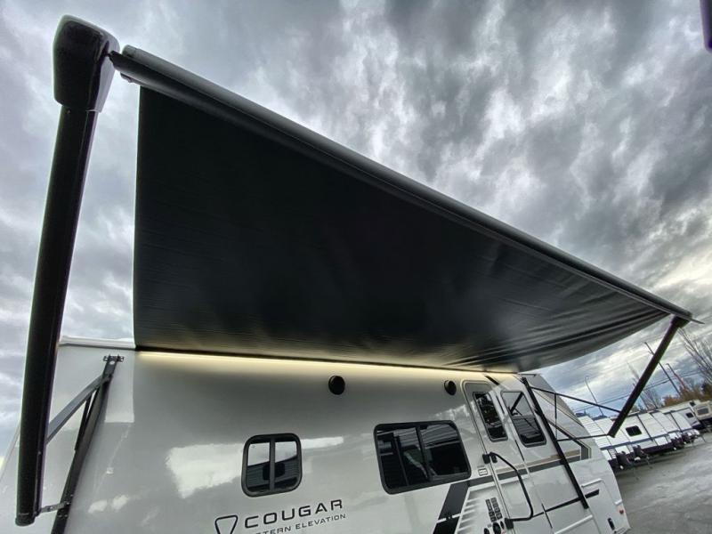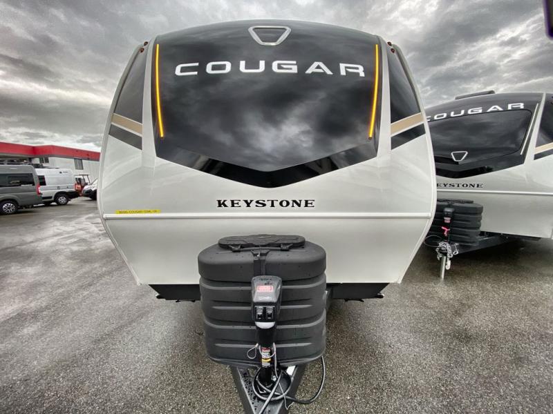 The Keystone Cougar Half-Ton fifth wheel and travel trailers are known as one of America's favorites for a reason! Some of those reasons are the exclusive features that come from Keystone, like the Winegard Air 360+ omni-directional rooftop antenna, the in-floor heating ducts, and the HyperCore composite wall construction with Vixen Fibrogloss high-gloss finish. The Cougar Half-Ton has a Climate Guard protection package with heat-deflecting white sidewalls, two roof attic vents, PEX plumbing and more to enjoy four season camping. Inside, you'll love the dimmable lighting, night roller shades throughout, shower skylight, and bedside USB outlets to keep your electronics charged.