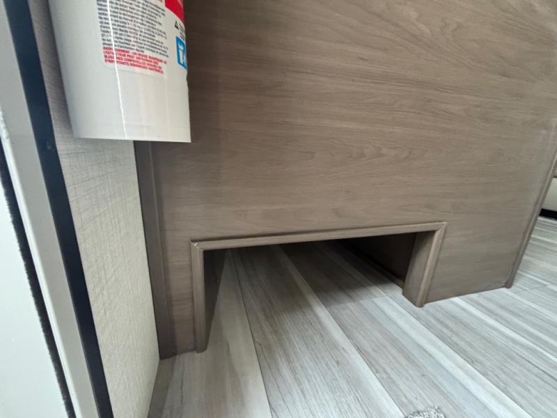 You'll love camping in this rear kitchen fifth wheel that can sleep five to six! Up front, you will enjoy a private bedroom with a king bed and bedside wardrobe/nightstands as well as a wardrobe with washer and dryer prep. A complete bath provides a large shower, toilet and sink, plus linen storage which you are sure to appreciate as you travel. There are plenty of options for this unit making it easy to customize to your use and style. The theater seating and free standing dinette options can be selected in place of the sleeper sofa and booth dinette if you prefer. There is also a 16' awning to create even more living space to enjoy, and the unobstructed pass-through storage compartment can easily house all of your outdoor camping gear like lawn chairs and yard games.