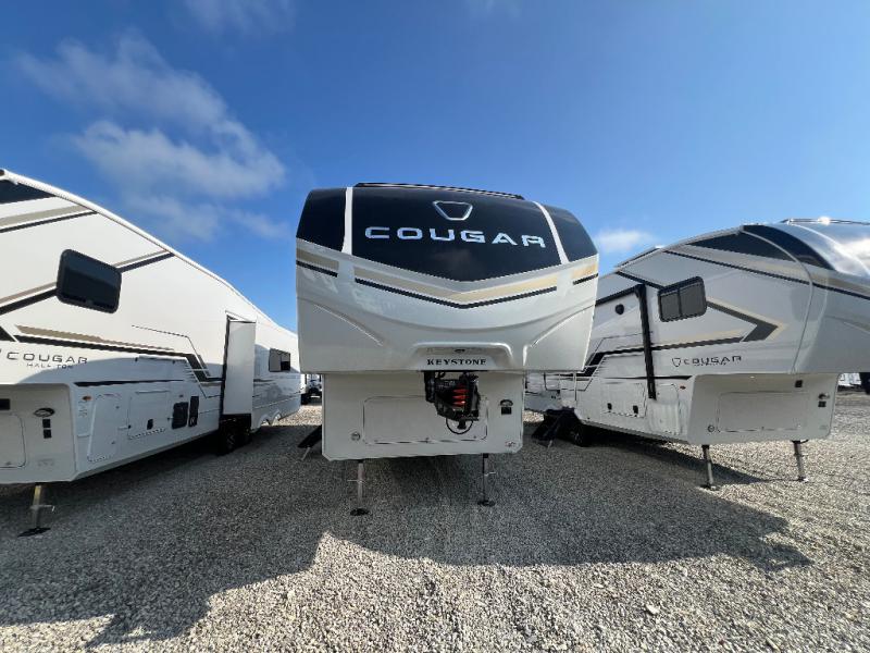 The Keystone Cougar Half-Ton fifth wheel and travel trailers are known as one of America's favorites for a reason! Some of those reasons are the exclusive features that come from Keystone, like the Winegard Air 360+ omni-directional rooftop antenna, the in-floor heating ducts, and the HyperCore composite wall construction with Vixen Fibrogloss high-gloss finish. The Cougar Half-Ton has a Climate Guard protection package with heat-deflecting white sidewalls, two roof attic vents, PEX plumbing and more to enjoy four season camping. Inside, you'll love the dimmable lighting, night roller shades throughout, shower skylight, and bedside USB outlets to keep your electronics charged.