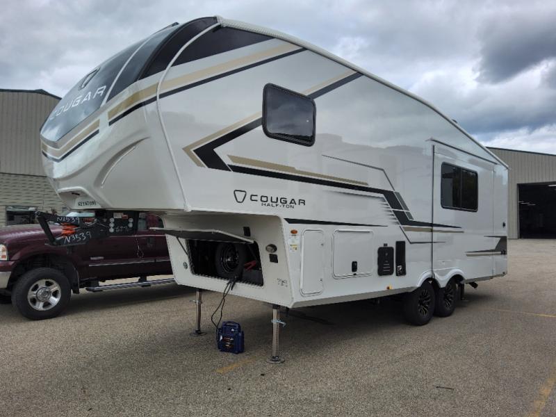 The Keystone Cougar Half-Ton fifth wheel and travel trailers are known as one of America's favorites for a reason! Some of those reasons are the exclusive features that come from Keystone, like the Winegard Air 360+ omni-directional rooftop antenna, the in-floor heating ducts, and the HyperCore composite wall construction with Vixen Fibrogloss high-gloss finish. The Cougar Half-Ton has a Climate Guard protection package with heat-deflecting white sidewalls, two roof attic vents, PEX plumbing and more to enjoy four season camping. Inside, you'll love the dimmable lighting, night roller shades throughout, shower skylight, and bedside USB outlets to keep your electronics charged.