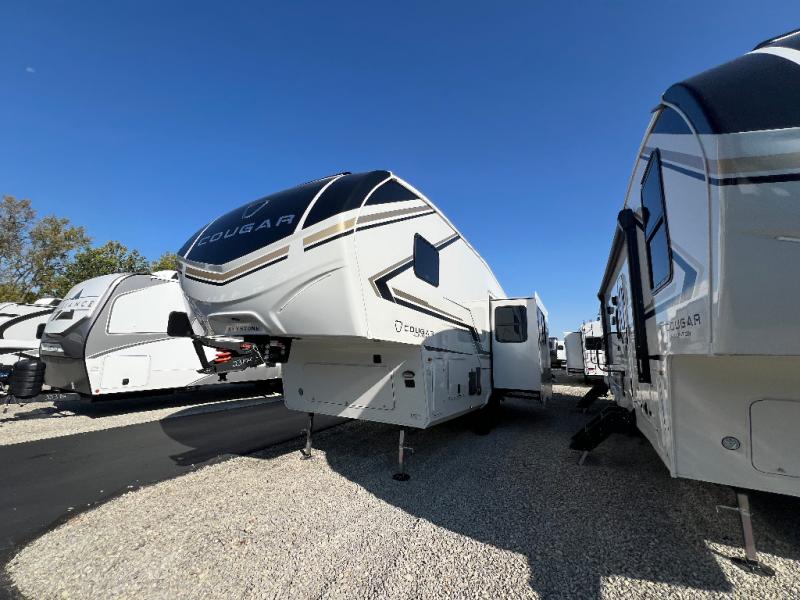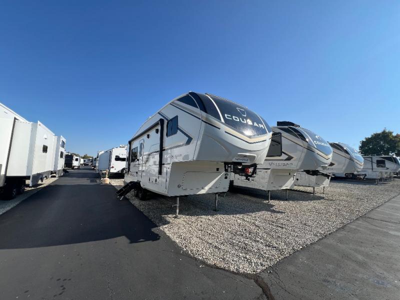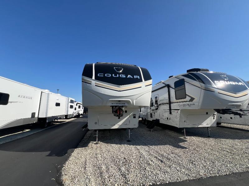 The Keystone Cougar Half-Ton fifth wheel and travel trailers are known as one of America's favorites for a reason! Some of those reasons are the exclusive features that come from Keystone, like the Winegard Air 360+ omni-directional rooftop antenna, the in-floor heating ducts, and the HyperCore composite wall construction with Vixen Fibrogloss high-gloss finish. The Cougar Half-Ton has a Climate Guard protection package with heat-deflecting white sidewalls, two roof attic vents, PEX plumbing and more to enjoy four season camping. Inside, you'll love the dimmable lighting, night roller shades throughout, shower skylight, and bedside USB outlets to keep your electronics charged.