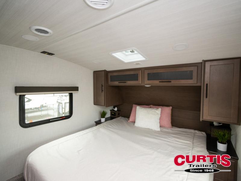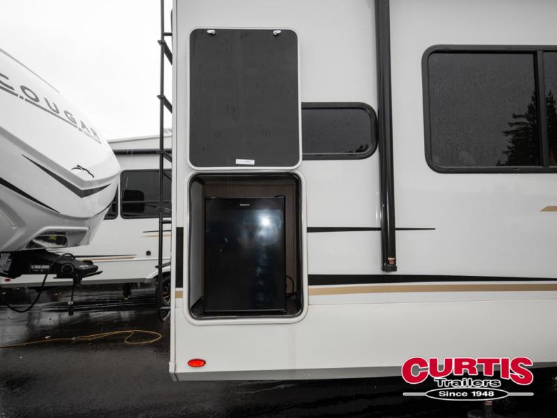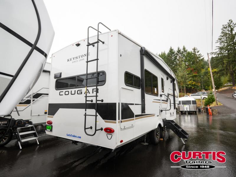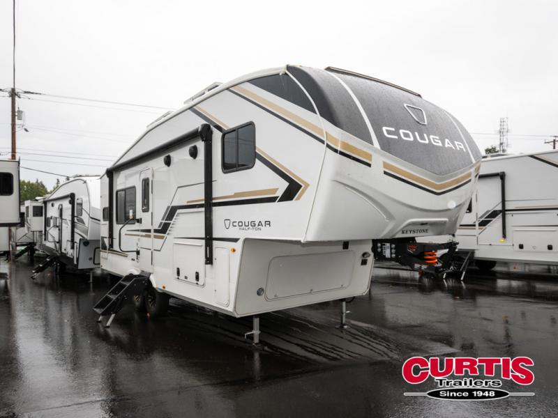 The Keystone Cougar Half-Ton fifth wheel and travel trailers are known as one of America's favorites for a reason! Some of those reasons are the exclusive features that come from Keystone, like the Winegard Air 360+ omni-directional rooftop antenna, the in-floor heating ducts, and the HyperCore composite wall construction with Vixen Fibrogloss high-gloss finish. The Cougar Half-Ton has a Climate Guard protection package with heat-deflecting white sidewalls, two roof attic vents, PEX plumbing and more to enjoy four season camping. Inside, you'll love the dimmable lighting, night roller shades throughout, shower skylight, and bedside USB outlets to keep your electronics charged.