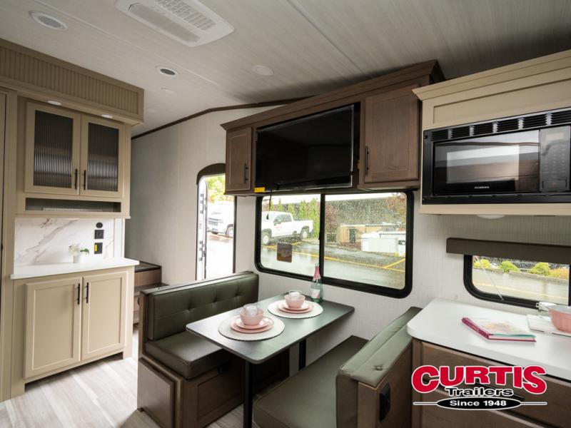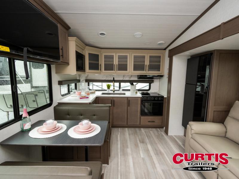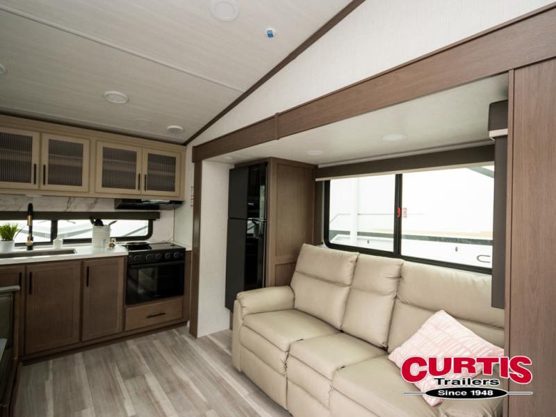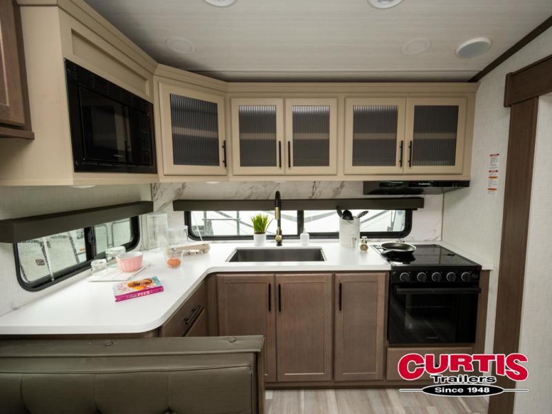 You'll love camping in this rear kitchen fifth wheel that can sleep five to six!