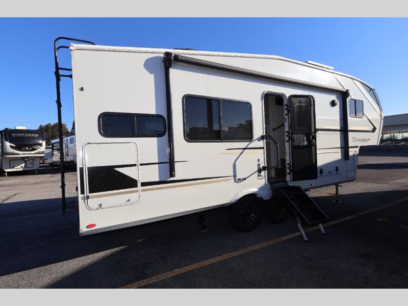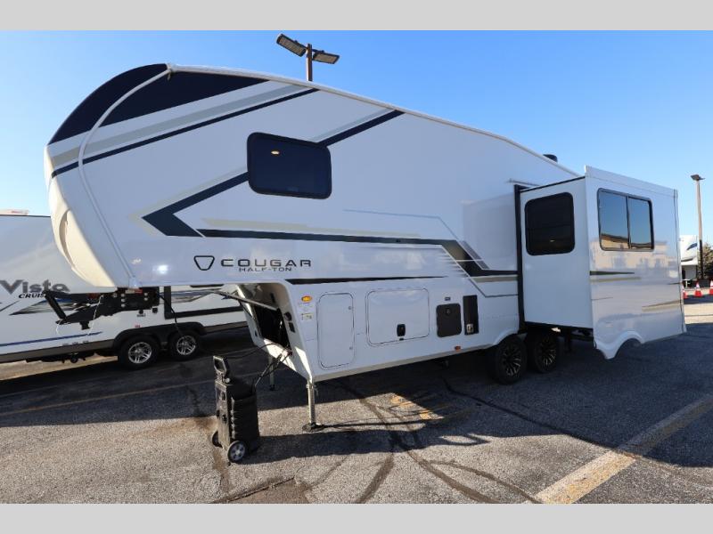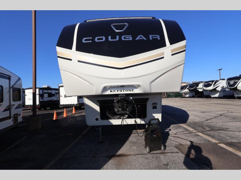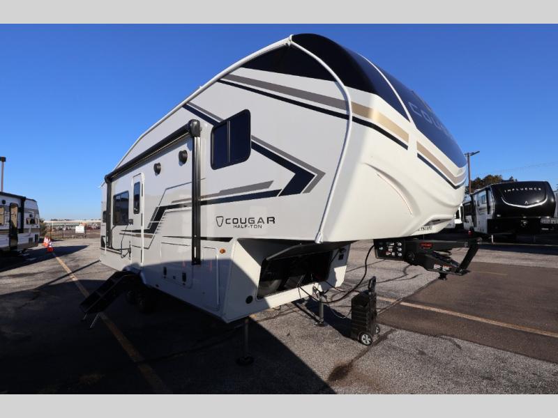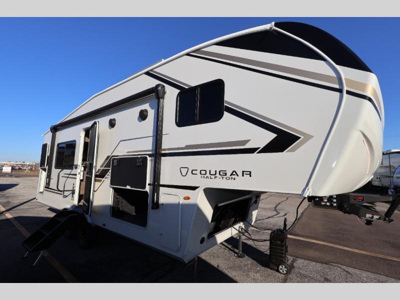 The Keystone Cougar Half-Ton fifth wheel and travel trailers are known as one of America's favorites for a reason! Some of those reasons are the exclusive features that come from Keystone, like the Winegard Air 360+ omni-directional rooftop antenna, the in-floor heating ducts, and the HyperCore composite wall construction with Vixen Fibrogloss high-gloss finish. The Cougar Half-Ton has a Climate Guard protection package with heat-deflecting white sidewalls, two roof attic vents, PEX plumbing and more to enjoy four season camping. Inside, you'll love the dimmable lighting, night roller shades throughout, shower skylight, and bedside USB outlets to keep your electronics charged.