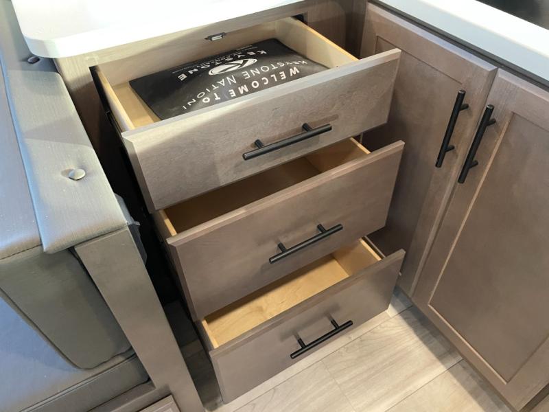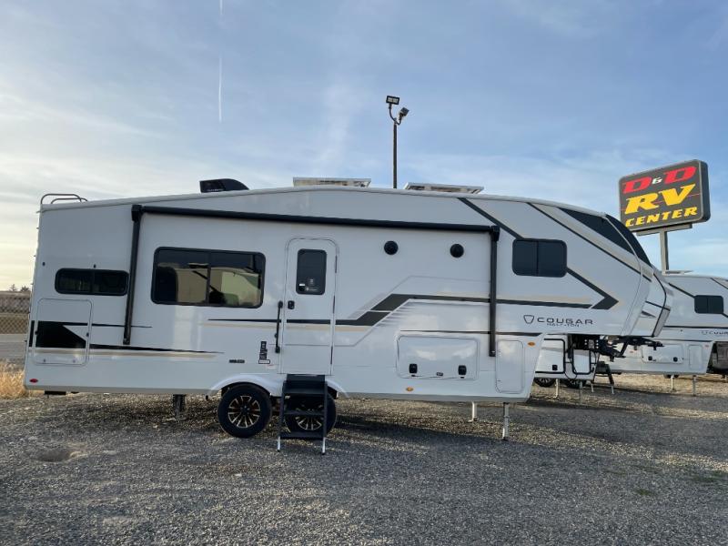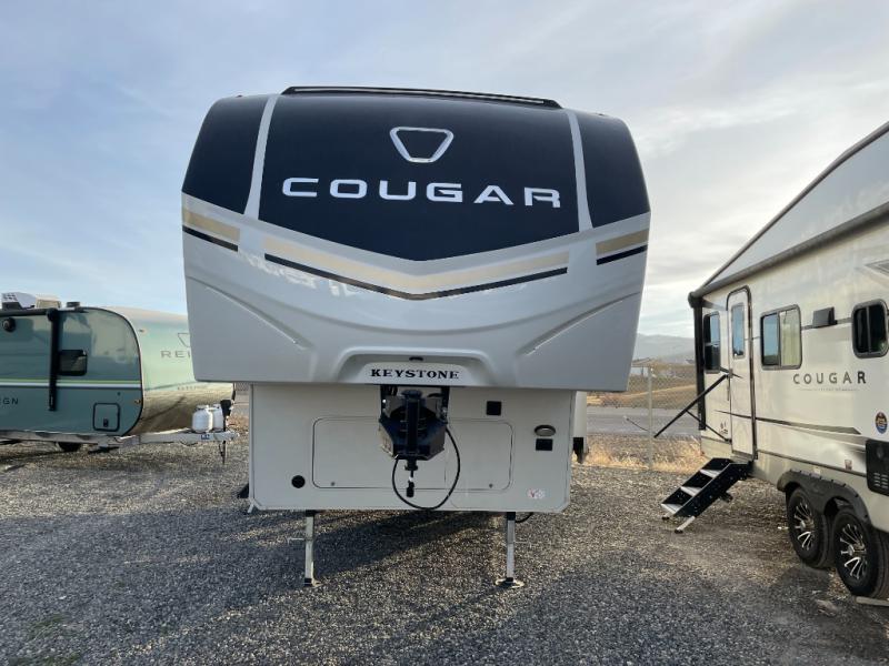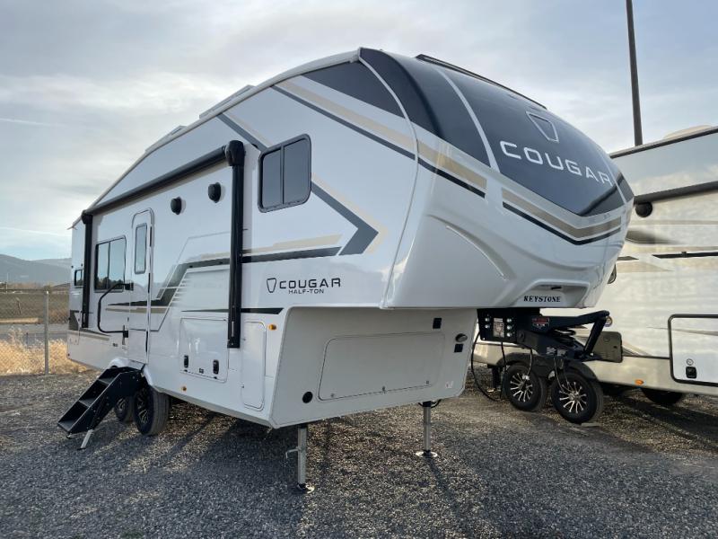 The Keystone Cougar Half-Ton fifth wheel and travel trailers are known as one of America's favorites for a reason! Some of those reasons are the exclusive features that come from Keystone, like the Winegard Air 360+ omni-directional rooftop antenna, the in-floor heating ducts, and the HyperCore composite wall construction with Vixen Fibrogloss high-gloss finish. The Cougar Half-Ton has a Climate Guard protection package with heat-deflecting white sidewalls, two roof attic vents, PEX plumbing and more to enjoy four season camping. Inside, you'll love the dimmable lighting, night roller shades throughout, shower skylight, and bedside USB outlets to keep your electronics charged.