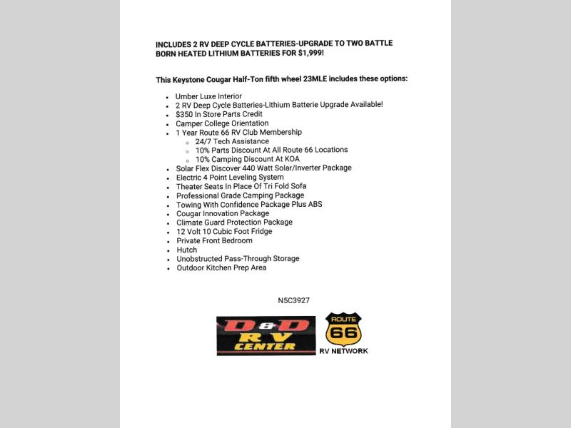 INCLUDES 2 RV DEEP CYCLE BATTERIES-UPGRADE TO TWO BATTLE BORN HEATED LITHIUM BATTERIES FOR $1,999!