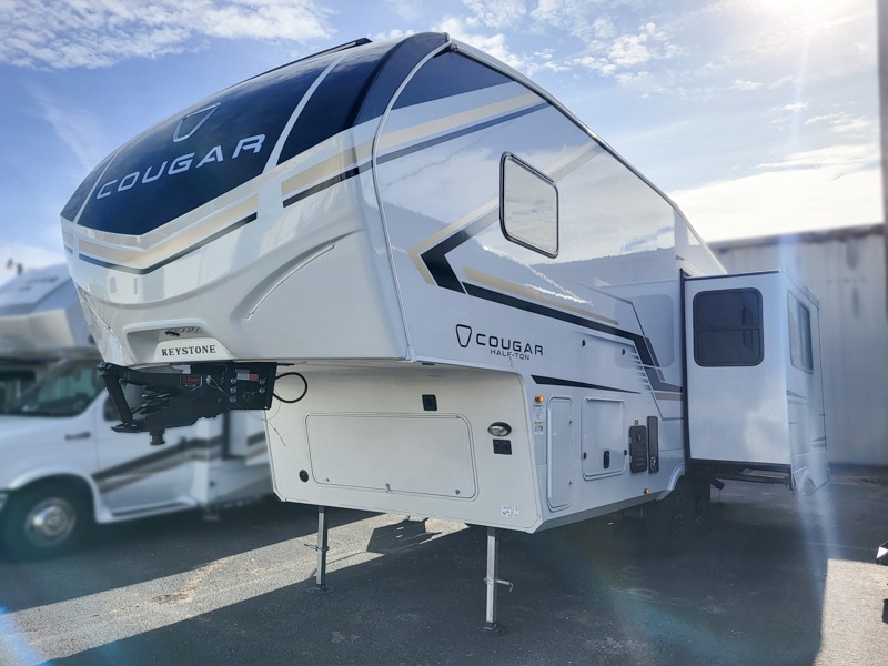 The Keystone Cougar Half-Ton fifth wheel and travel trailers are known as one of America's favorites for a reason! Some of those reasons are the exclusive features that come from Keystone, like the Winegard Air 360+ omni-directional rooftop antenna, the in-floor heating ducts, and the HyperCore composite wall construction with Vixen Fibrogloss high-gloss finish. The Cougar Half-Ton has a Climate Guard protection package with heat-deflecting white sidewalls, two roof attic vents, PEX plumbing and more to enjoy four season camping. Inside, you'll love the dimmable lighting, night roller shades throughout, shower skylight, and bedside USB outlets to keep your electronics charged.